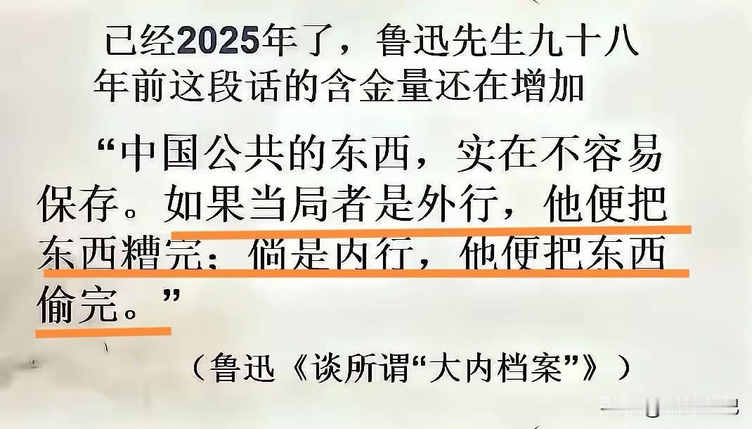 南博事件,由亮相拍卖市场被估8800万的《江南春》而引燃,因郭典礼实名举报前院长徐湖平而爆发,一时引起网上热议,现在随着调查组成立,事件已经朝着“剧终”方向发展,一切必将大白于天下。回头看这一事件,再想一想鲁迅先生九十八年前写的这段话:“中国公共的东西,实在不容易保存。……倘是内行,他便把东西偷完。”他把管理和人性看得很准,分析很透,管理有漏洞,监守自盗,防不胜防!