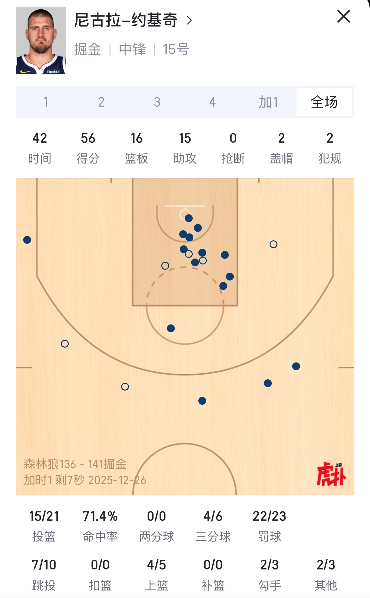 掘金加时战胜森林狼约老师今天数据 56分16篮板15助攻 👍