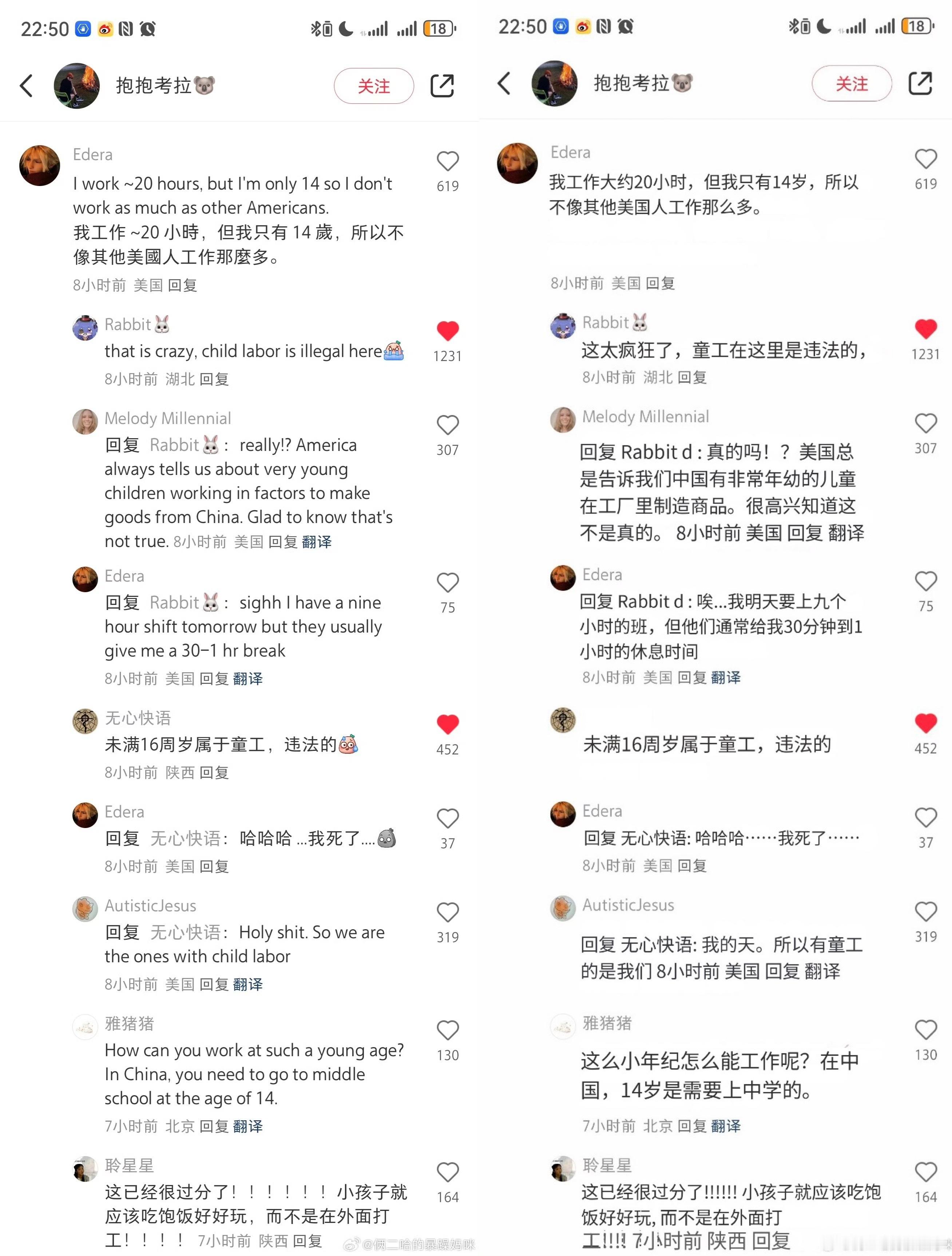 🔻网友分享:“年初大对账时截的图,下面有个美国IP的说“holy shit,so we are the ones with child labor”(mmp,搞了半天我们美国才是那个用童工的国家),真给我笑死,没有不同情最上面的14岁童工,但是我的道德跟笑点在打架,不知道你们能不能get我的笑点。”美国许多孩子或出生就在斩杀线以下美国斩杀线现象热点现场海外新鲜事