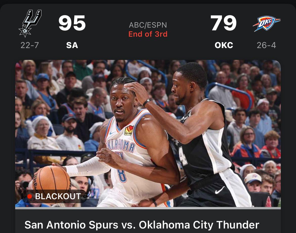 马刺再次大破雷霆赛季对阵掘金1-0赛季对阵雷霆2-0面对西部最强两队赛季保持不败