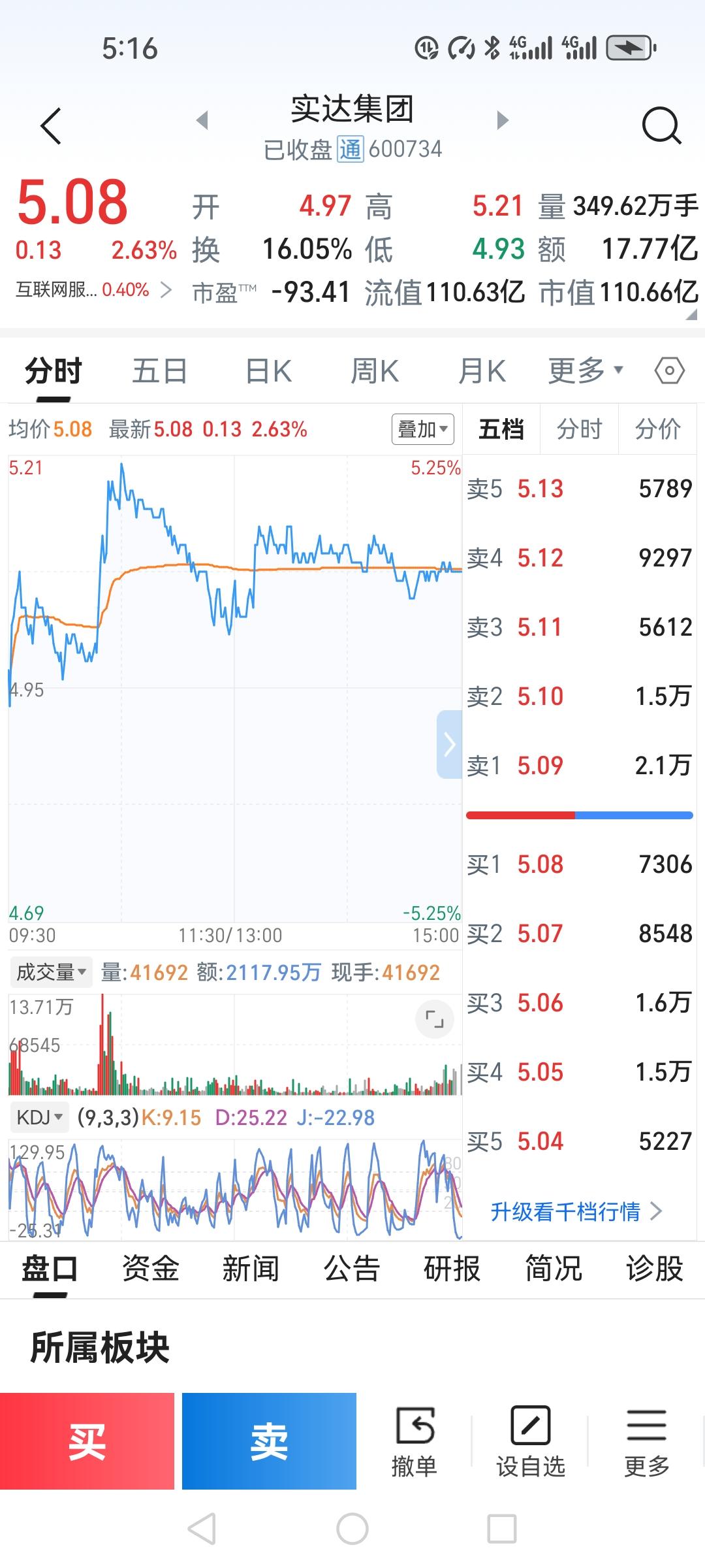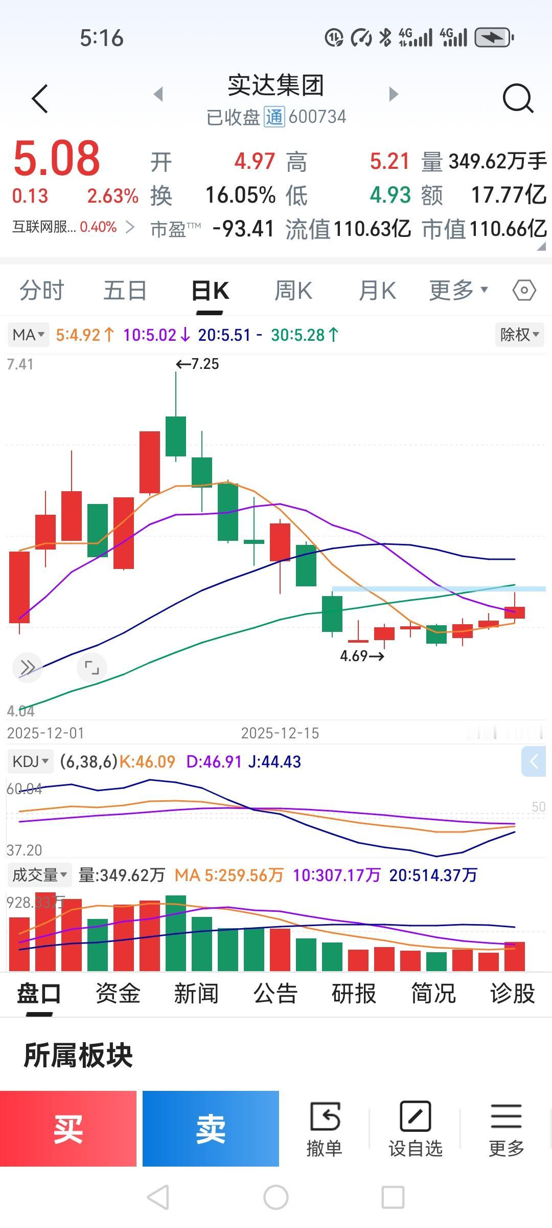 实达集团今天成功做了一次T,5元进场,5.11元离场,虽然只盈利2.2%,但稳稳落袋的感觉挺好。 实达集团:连续横盘,出现企稳信号? 在底部出现大阴线后,该股连续7个交易日横盘整理,没有再向下破位。这种“平底不破”的形态,往往意味着阶段性底部正在形成。如果后续能温和放量,或许可以把握低吸机会,关注整理区间的突破方向。 我现在手里还有8000股,明天看看找机会补仓做T,降低成本,一定要大胆买入,克服犹豫不决的心理。你们买过实达集团吗?来聊聊你们的经验和对实达后期的操作。