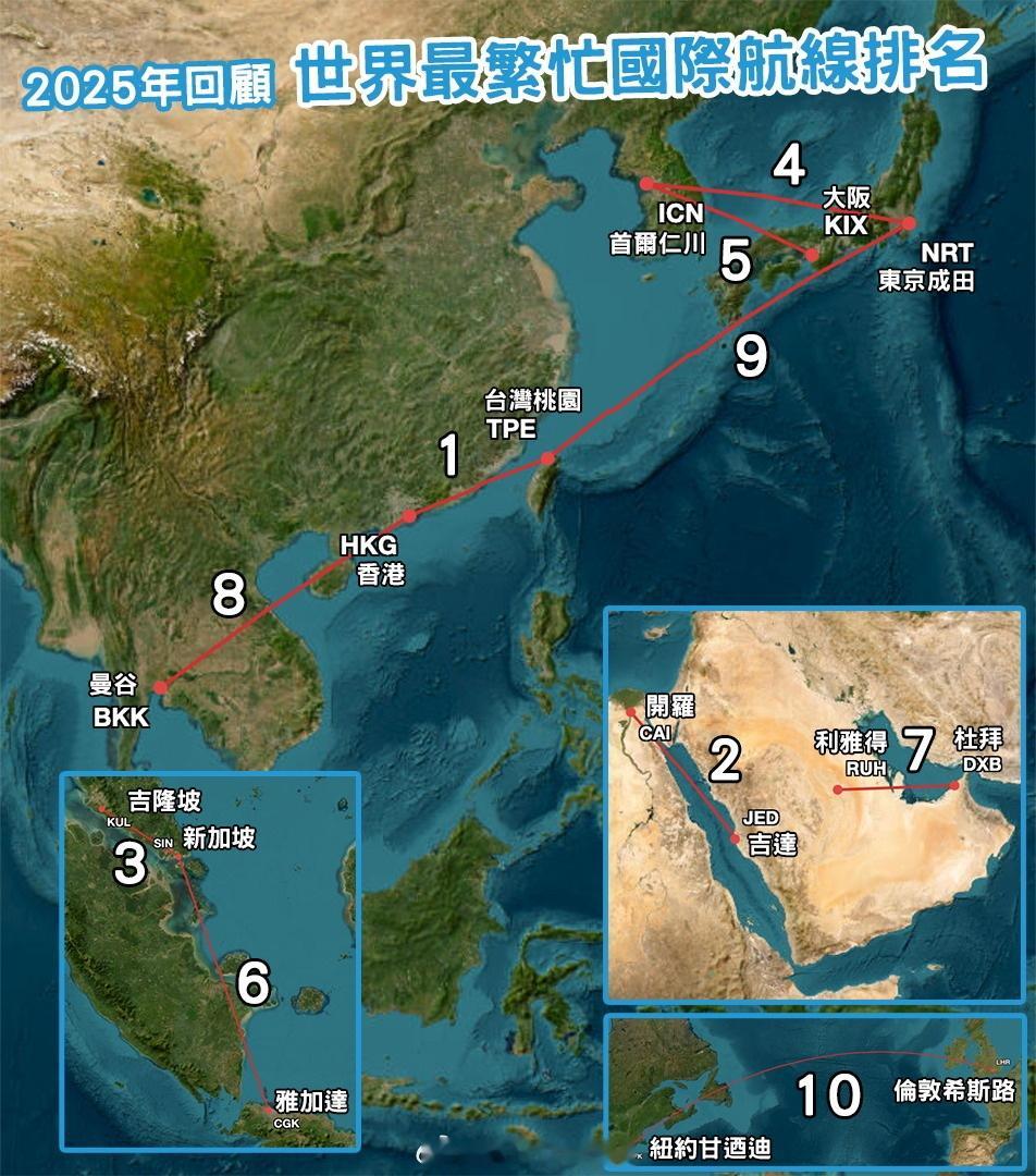 2025年全球最繁忙的国际航线*国际航线要素:独立的航空管理权、需要办理出入境手续、使用国际候机楼。航空航空公司世界地理
