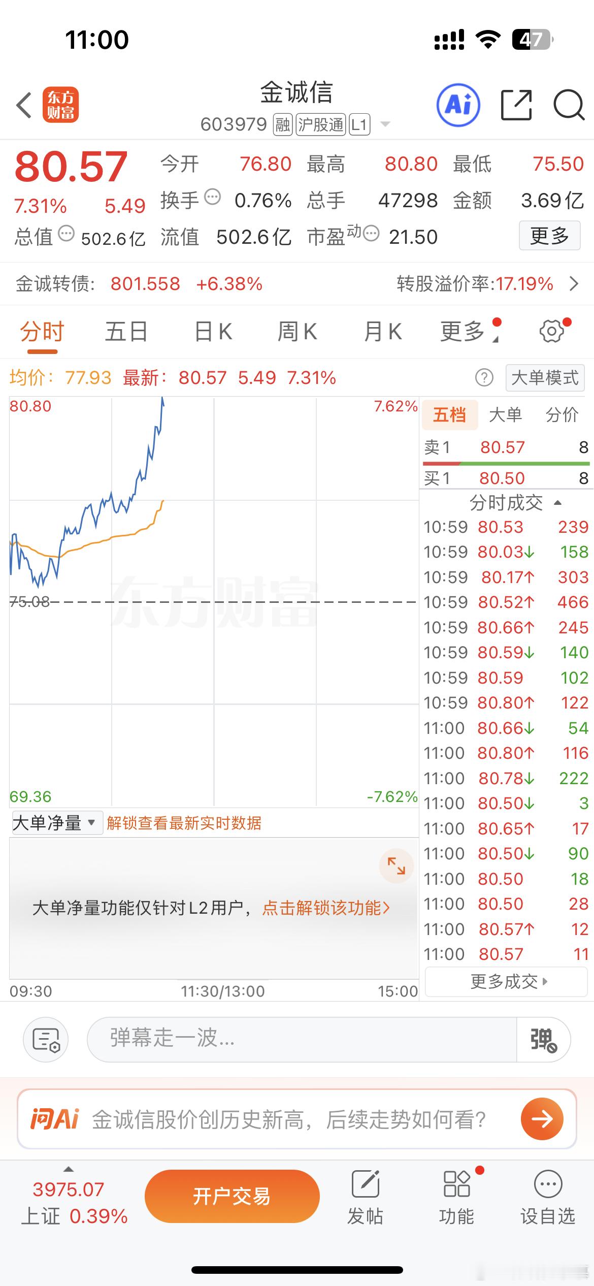 同志们,昨天咱们午盘新进的的V+票,$金诚信sh603979$发飙了
