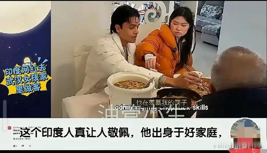 刷到一个印度网红去武汉女孩家做客的视频,国外网友的评论让人大开眼界, 原来两人是在网上闲聊认识的, 由于对方是印度人, 武汉女孩表示对印度文化很感兴趣, 两人就这么聊上了, 后来这名武汉女孩邀请对方来武汉玩, 对方看看武汉女孩这么热情, 于是就接受了邀请, 风尘仆仆的飞到了武汉, 女孩直接开车去接了他, 两个人相谈甚欢, 一路上有说有笑, 武汉女孩热情的介绍了武汉的特色, 这几天陪着印度小伙玩遍了武汉, 晚上并没有叫印度小伙住酒店, 而是将他带到了家中, 还给他做了满满一大桌子武汉美食, 当印度小伙想使用手的时候, 武汉女孩热情的给他介绍了筷子的使用,两个人感情迅速升温, 很快两人开始谈起了朋友, 时间过得很快, 几个月的时间印度小伙就想家, 他邀请武汉女友去印度, 可武汉女孩并不想去印度生活, 只能依依不舍的送走了他, 两人相约等印度小伙再次回到武汉! 印度小伙也表达了对于武汉的喜爱, 大家对于这对中外恋怎么看?