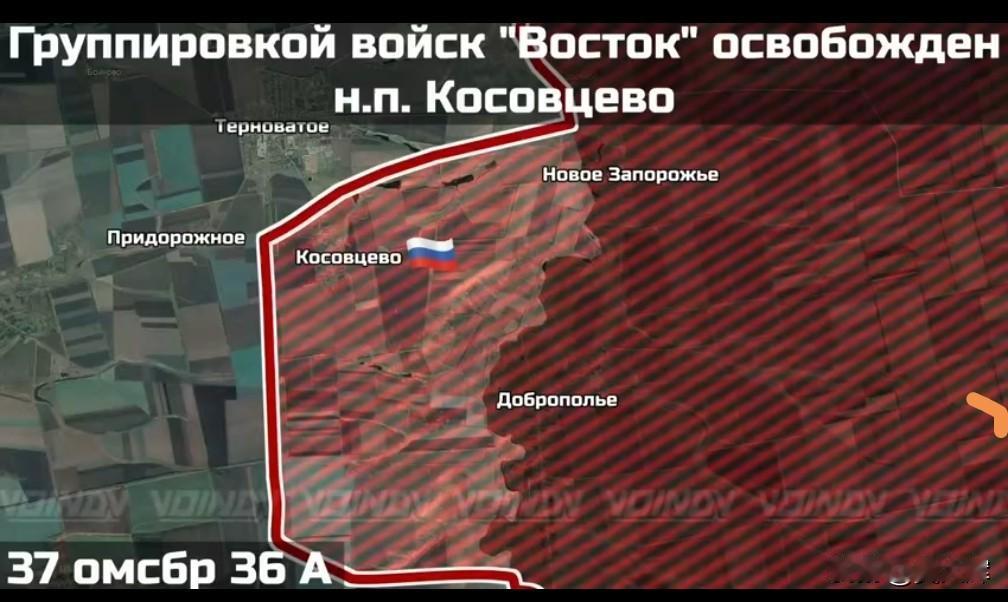 俄罗斯东部集群攻克扎波罗热州科索夫采沃居民点 🟥 俄军东部集群第36集团军第37近卫旅向西推进,在盖丘尔河西岸深入乌军防线4公里、沿战线拓展6公里,成功控制科索夫采沃居民点及周边逾23平方公里领土; 🟥 据“东部战士”(Воин DV)消息,经激烈战斗,已为封锁乌军大型后勤枢纽创造有利条件,歼灭乌军第110机械化步兵旅、第33国土防御旅近一个排的兵力,摧毁2辆装甲战斗车辆、5架“芭芭雅嘎”型六旋翼无人机。