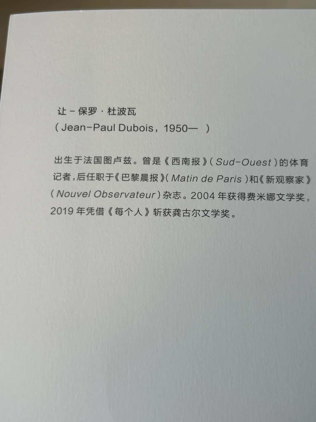 这本书是法国作家让-保罗-杜波瓦的半自传色彩虚构小说。我最开始了解这本书是通过蒋方舟,杜波瓦还有一本书《每个人》,两本书就奠定他的写作生涯,让他获得了费米娜文学奖和龚古尔文学奖。