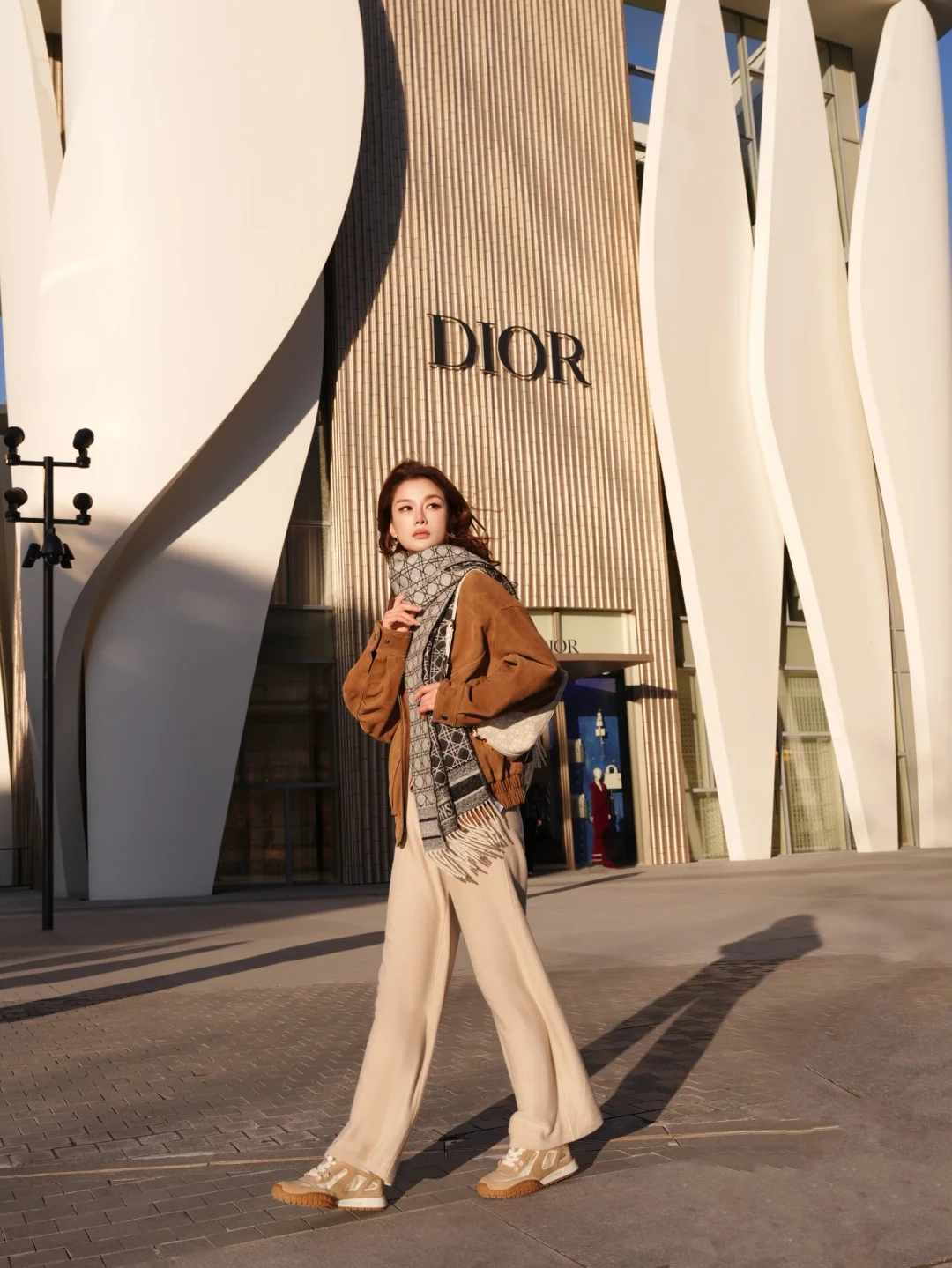 全球仅只有的5家House of Dior 分别位于纽约 洛杉矶 东京 首尔 北京 这间北京的迪奥之家 用花苞的形态来设计店铺 让外形有了柔和的流动性 进去买完东西 SA把我带到内部电梯才知道 店铺里的电梯可以直通车库 (需要刷卡 下次来三里屯逛街不用挨冻了🥹❄️ 👟🧣💎:Dior 👜:OBLIQUE STITCHING DIORSTAR HOBO