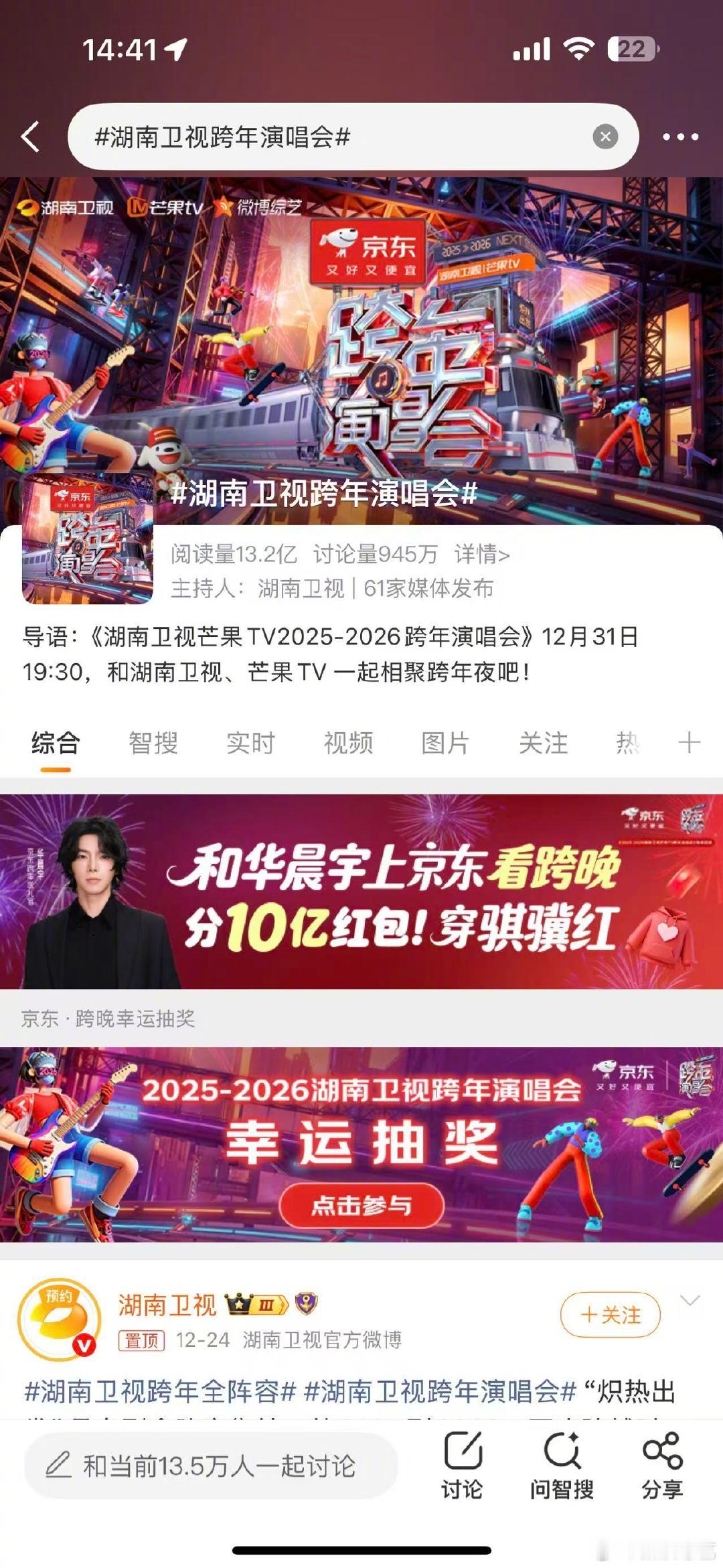 你知道吗,今年穿搭主题是骐骥红。现全网征集明星们红色最佳look!快来带话题湖南卫视跨年演唱会、上京东穿骐骥红跨晚有奇迹 发布你担的红色look吧,让我们看看你担的穿搭有多绝!现在打开京东APP搜索【骐骥红】【跨晚穿搭】解锁更多粉丝惊喜哦!另外,进入话题湖南卫视跨年演唱会戳下方小条条参与抽奖大转盘互动,有机会获得由提供的京东e卡奖品哦!