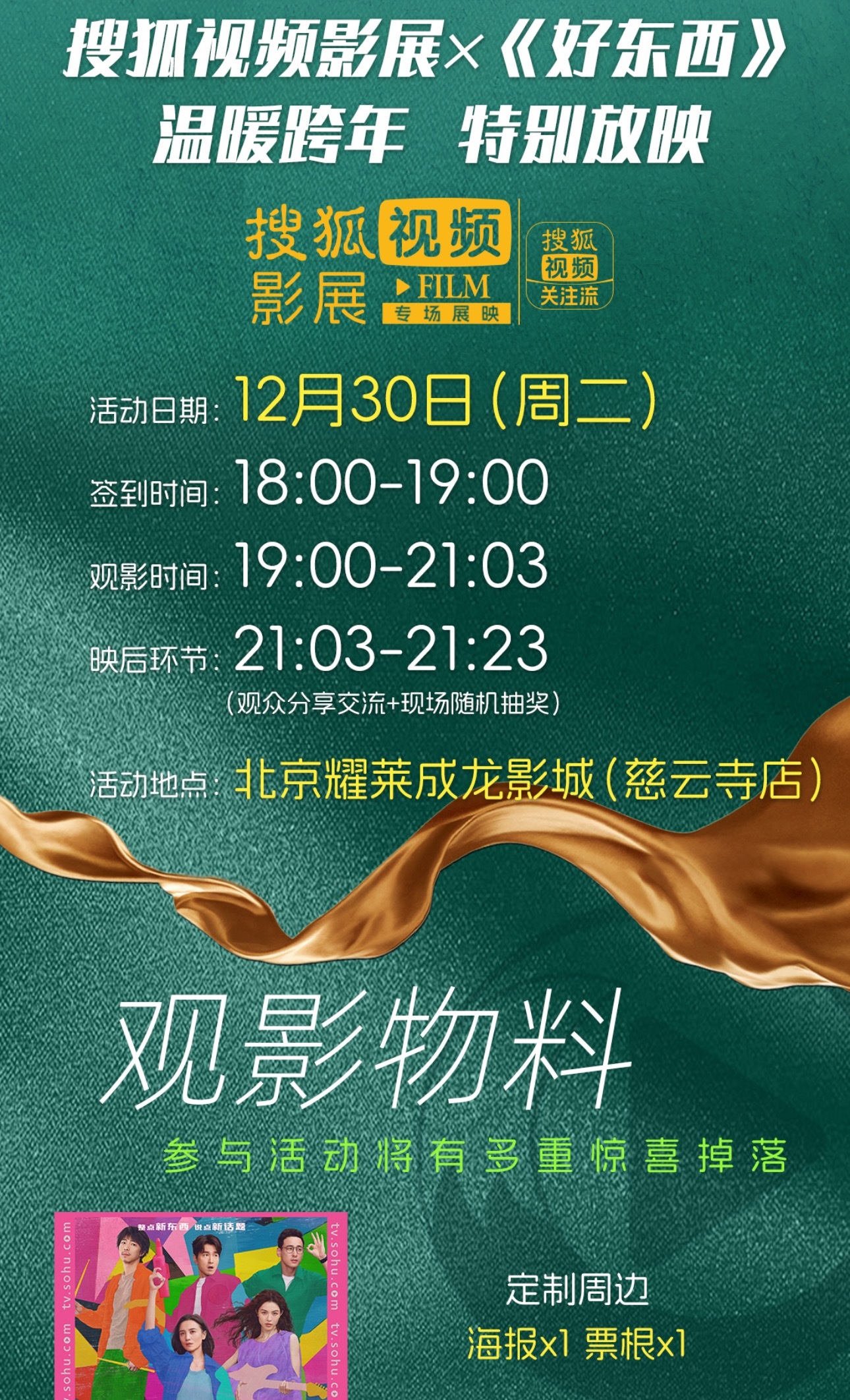 采访一下!有人想去电影院看《好东西》么 搜狐视频影展的跨年特别放映活动有给观影物料(定制海报+票根)想去的可以举手🙋🏻♀️ 评论里我随机挑选几个宝(现场分享·映后发言可得!)电影官方授权帆布袋(映后抽奖·现场随机抽取!)电影官方授权帆布袋、主创亲签、狐厂新年狐狸笔记本