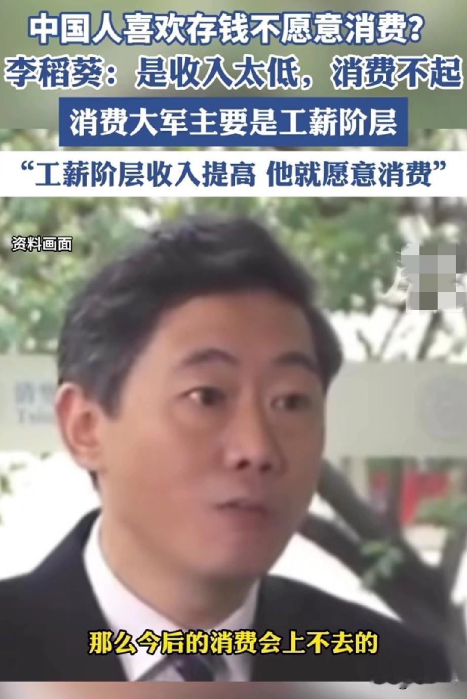 还是有真专家的, 网络上天天说中国人喜欢存钱,不喜欢消费,经济学家李稻葵看不下去, 直接公开表示是收入太低,消费不起, 这无疑是戳破了那层窗户纸, 他表示消费主力军是工薪阶级, 如今国内的收入分配很不均匀, 大部分分配给了企业主, 他们拿着高额的利润, 然后去国外大肆挥霍, 对于国内的国内的消费大局毫无作用, 这位专家痛心疾首, 如果不改变这样的格局, 那么消费是提升不上去, 如果工薪阶级收入提高了, 那他自然会去消费, 那么消费市场自然就可以提升上去, 如果只是聚集在几个人手中, 他们在国内的花费有限, 确实是无法提升国内的消费市场, 如今不光是年轻人不消费, 就连老年人也不消费, 一味的给予了很多刺激消费的政策, 效果也是杯水车薪, 其实很多专家心里都清楚, 只是没有人敢于讲出了, 这位专家还是很有良心的, 大家对于这位专家的言论怎么看? 中国消费经济 中产消费 中产消费萎缩 消费群体分析 中国消费 中产消费观 穷人消费心理