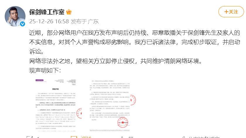 保剑锋律师声明保剑锋否认出轨 保剑锋工作室发布律师声明,否认“出轨”、“妈宝男”等传闻:“近期,部分网络用户在我方发布声明后仍持续、恶意散播关于保剑锋先生及家人的不实信息,对其个人声誉构成恶劣影响。我方已诉诸法律,完成初步取证,并启动诉讼。”