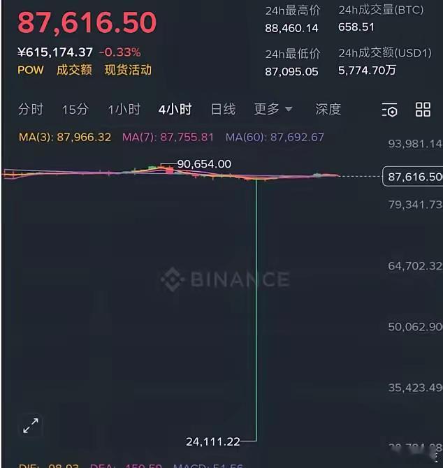 比特币昨天晚上闪崩,从8.76万美元下跌到了2.41万美元,加了杠杆的可以说是瞬间清零了。