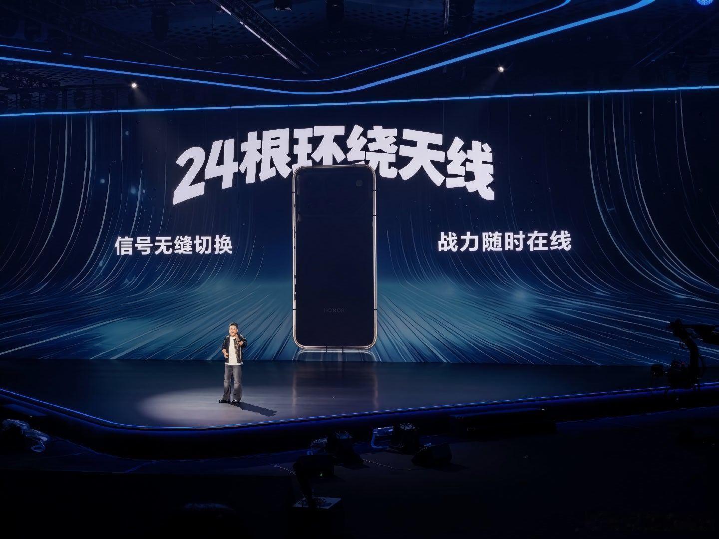 荣耀WIN支持了Magic系列同款的外放扬声器喇叭,同时针对游戏也带来了听声辨位的优化。信号方面,采用了24根环绕天线,保证了游戏时的体验。
