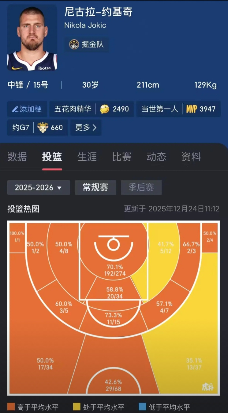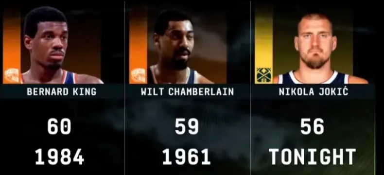 詹姆斯那会儿拿个27+7+7就被称为全能,现在约基奇这个动不动给你来个60+三双,今天直接来一个56+16+15,这个数据简直太恐怖了,关键是他还能带着球队赢球。