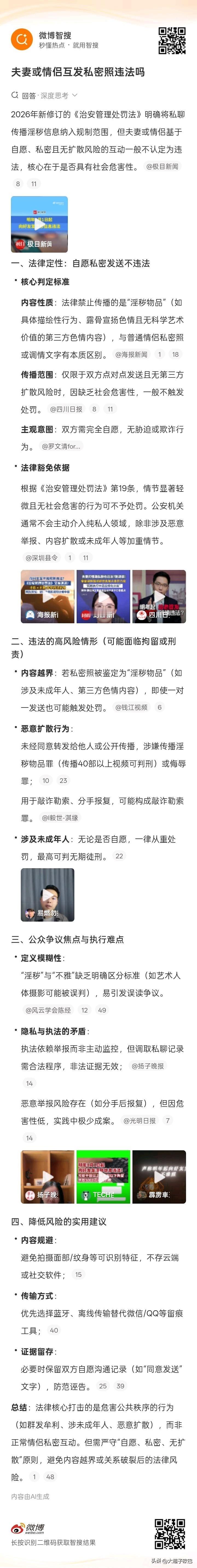 情侣和夫妻们注意了,别再聊天时上了头给对方发自己的私密照了,新修订的《治安管理处罚法》明确将私聊传播淫秽信息纳入规制范围,有可能你给对方发私密照片的行为已经违法了,如果是双方在性生活或者聊天中,一方拍了照片或者视频发给对方,这样算不算违法?