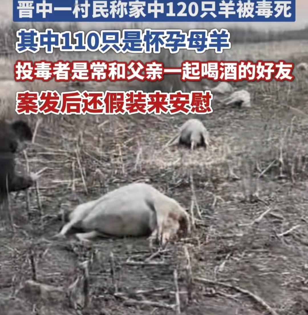 山西一养殖户的120只羊被村民毒死,凶手竟是父亲好友,之前还假装来安慰。 山西晋中赵女士家的遭遇,真的是让人又气又心疼!12月2日,赵女士父亲放羊时,120只羊突然接连死亡,其中110只都是怀孕母羊,剩下80只母羊也全都掉了胎。家里的羊本就是借钱买的,这一下直接损失38万,弟弟妹妹的学费都没了着落。 更让人想不到的是,警方一天就破了案,投毒者竟然是同村的武某,要说这武某可是赵女士父亲的好友,平时常来家里喝酒。事发后武某还假惺惺跑来帮忙安慰,嘴里说着“谁会干这种缺德事”,演技简直绝了! 据赵女士说,武某是把拌了毒药的玉米粒藏在地里,羊吃了才出的事,疑似只是因为之前和父亲吵了几句嘴。武某儿子起初还说愿意赔偿,后来却翻脸不认人,至今一分钱都没赔。 目前武某已经被检察院批准逮捕,警方以危害公共安全罪立案调查,可村里干部还说“闹大了不利于和谐”。 都说远亲不如近邻,何况还是多年好友,就因为几句争执,就下这样的狠手,不仅毁了别人的生计,更是寒了人心。希望法律能还赵女士一家一个公道,也让这种损人不利己的人付出应有的代价!羊 毒死羊 投毒