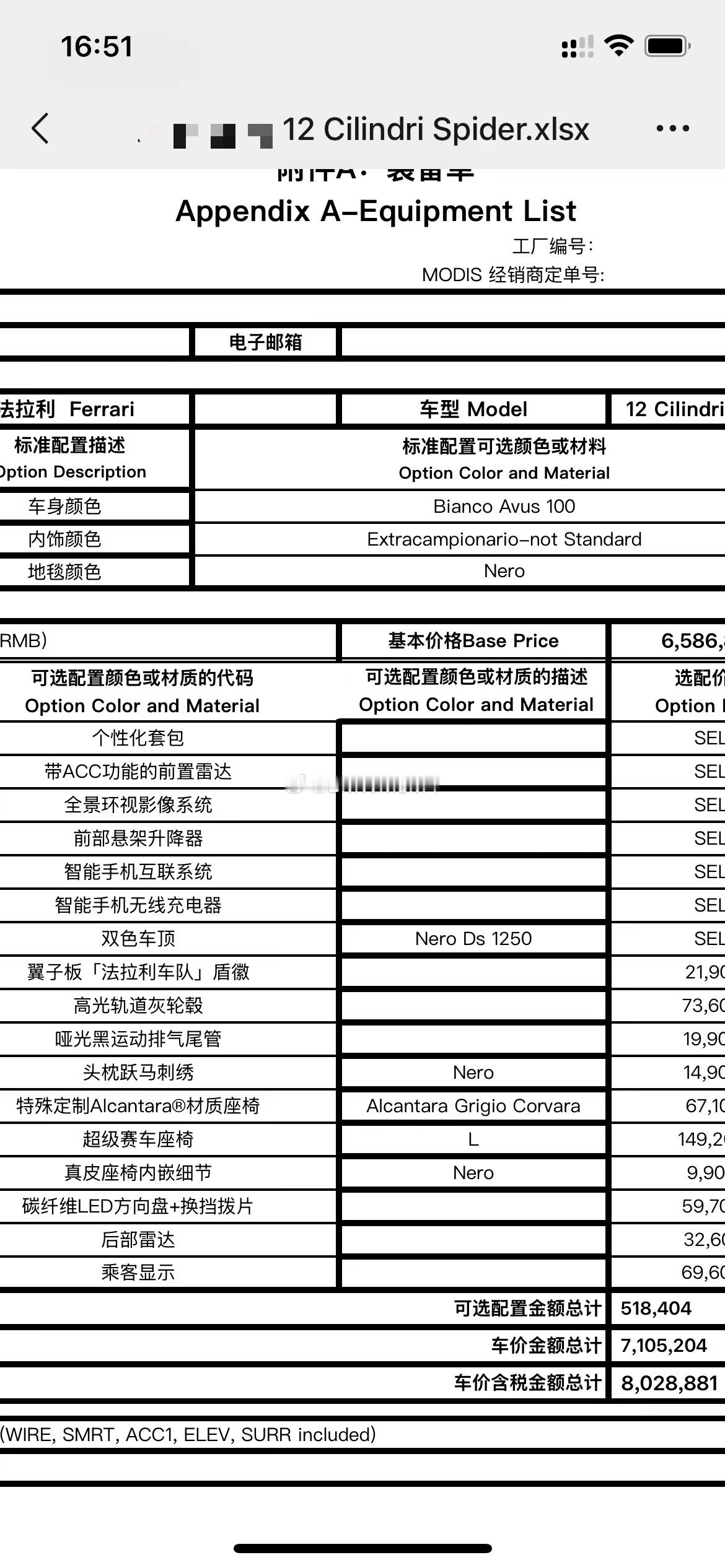 咱也是出息了,今天营业额干了1200万这台落地八百多万的法拉利12缸给齐鲁大地的神秘董事长安排一下配置单仅供参考啊,不是实车的,等交付了再发实车的配置单看来各位M老车主都赚到钱啦,不找我买M power,都买更贵的车啦朋友圈没发不代表没有哈,还有董事长想要法拉利12 Cilindri Spider的吗? 深圳