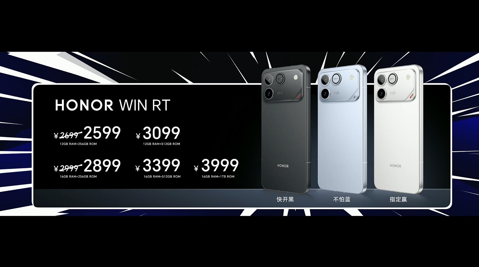 荣耀WIN 系列售价公布!荣耀WIN RT12GB+256GB售价为2699元(首销2599)16GB+256GB售价为2999元(首销2899)12GB+512GB售价为3099元16GB+512GB售价为3399元16GB+1TB售价为3999元荣耀WIN12GB+256GB售价为3999元12GB+512GB售价为4499元(首销4399)16GB+512GB售价为4799元(首销4699)16GB+1TB售价为5299元(首销5199)