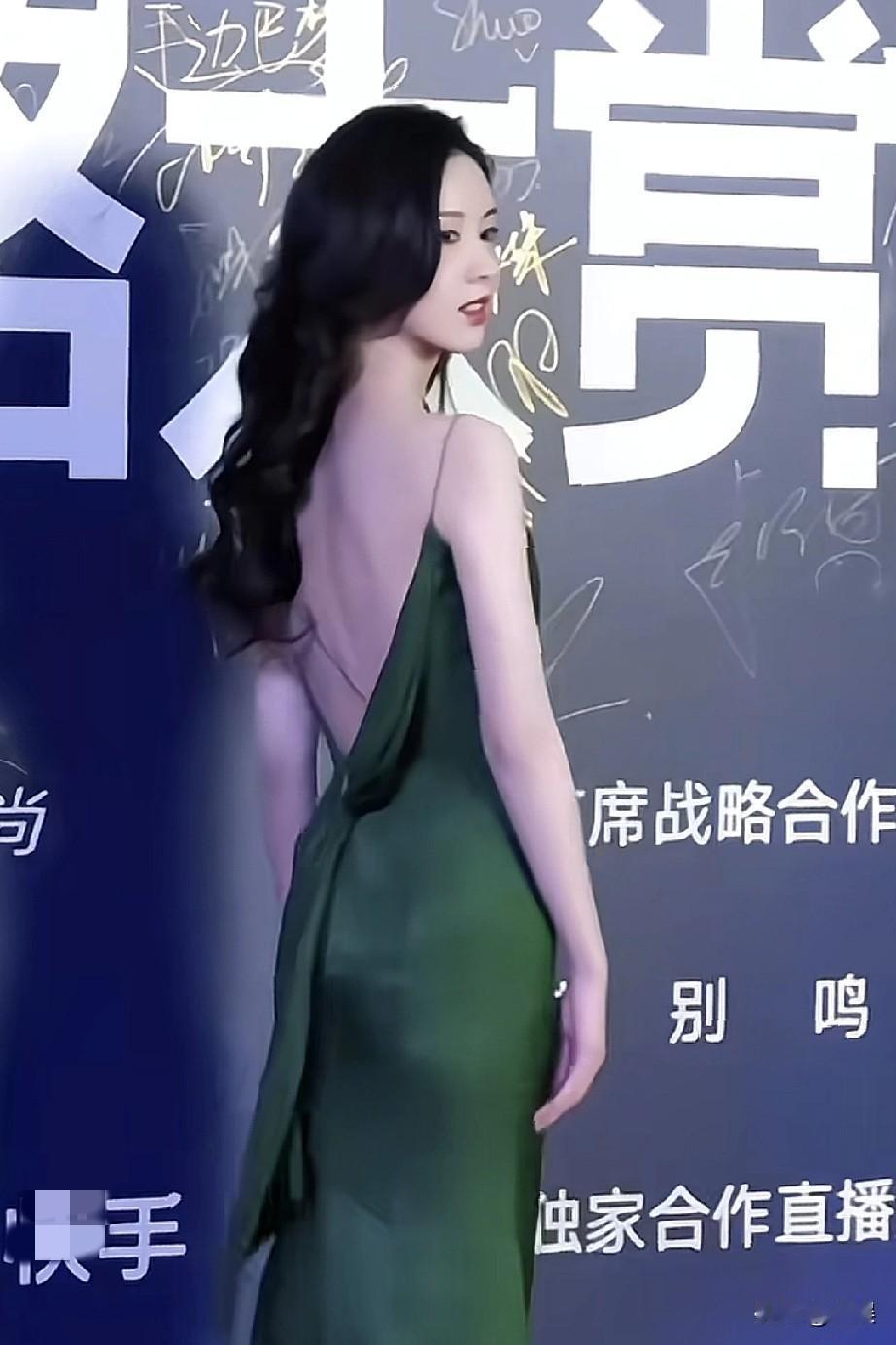 陈都灵身着一袭墨绿色吊带鱼尾长裙,在活动红毯上