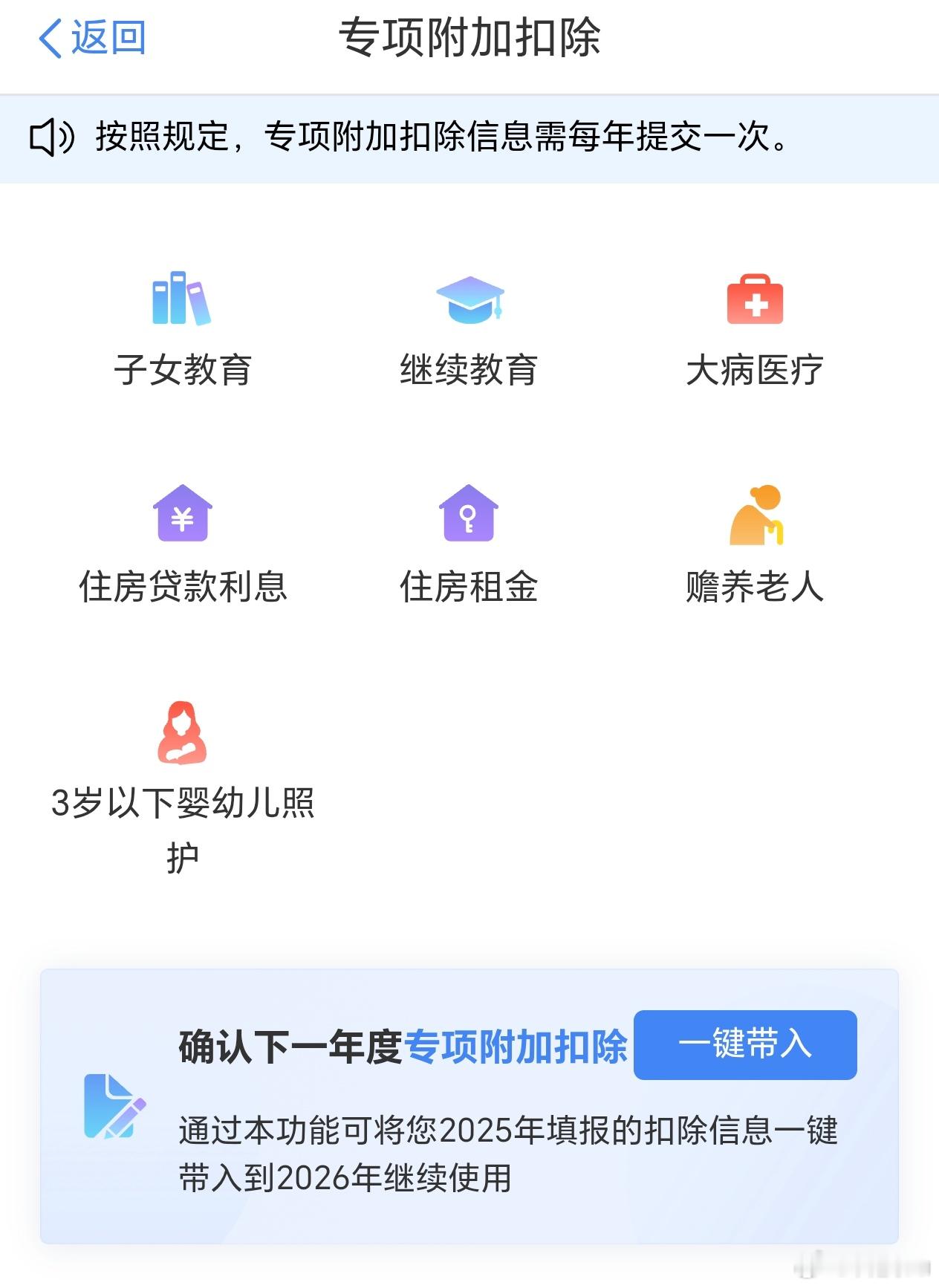 抓紧去个税App确认这个信息个税App的专项附加扣除信息确认得确认一下,也许会让你多退一些税。不过我没有一项符合的,哈哈。