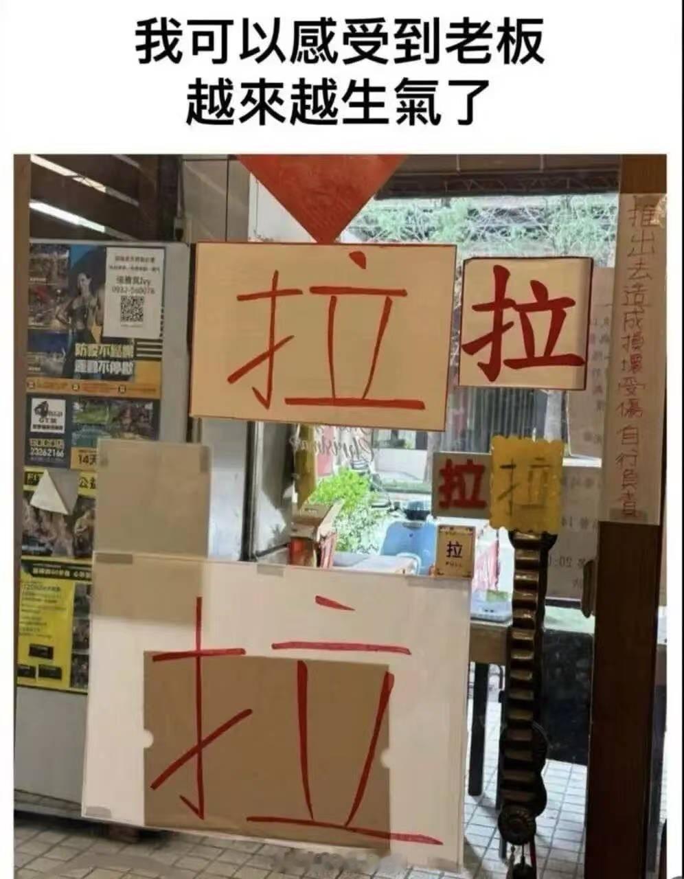 前几天走走火通道,有个女的一直在我前面,到一楼防火门前,她两扇门都努力换边拉了几秒,之后回头向我投来求助的目光……我上前推开贴了块“推”字提示牌的门。现在有太多人,走路就低头看手机,任何路牌指示都不会看。我觉得,以后这些提示都需要改成电子屏才能对他们生效的。迷惑行为大赏