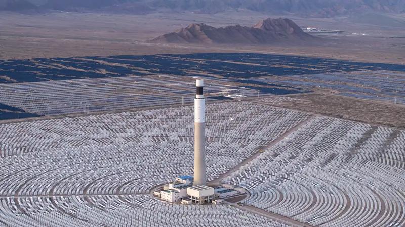 戈壁滩上的“超级镜子发电站” 在甘肃敦煌的戈壁滩上,有一座占地7.8平方公里的“超级镜子发电站”——敦煌首航节能100兆瓦熔盐塔式光热电站。12000多面定日镜如蓝色海洋般环绕着260米高的吸热塔,每年可输送2.36亿千瓦时清洁电力,减排二氧化碳35万吨,相当于造林1万亩。 🌞 核心原理:光—热—电的魔法 与光伏发电不同,光热发电通过镜子将阳光反射到塔顶,加热熔盐至565℃以上,再将热能储存起来发电。即使太阳下山,熔盐储热系统也能支撑电站连续供电14小时以上,实现24小时稳定输出。 🌱 生态效益:荒漠变绿洲的奇迹 光热电站不仅发电,还能改善生态。镜面清洗用水滋养土地,定日镜阵列可降低风速50%,减少水分蒸发30%,昔日戈壁逐渐长出绿草,甚至发展出“板上发电、板下养羊”的生态牧场。 🚀 未来展望:清洁能源的“稳定器” 光热发电兼具储能和调峰功能,可弥补风电、光伏的间歇性缺陷。我国已启动格尔木350兆瓦全球最大光热项目,未来度电成本有望降至0.4元/千瓦时以下,成为新型电力系统的关键支撑。 戈壁滩光伏发电 光热研究 光热疗法  塔式光热项目 甘肃太阳能发电 中国光热发电站 甘肃光热电站