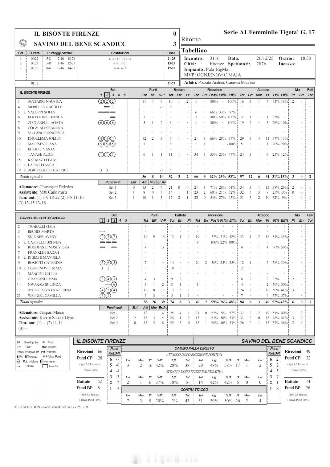 【意甲女排斯坎迪奇3-0轻取佛罗伦萨安娃16分】国际排坛战报速递12月26日