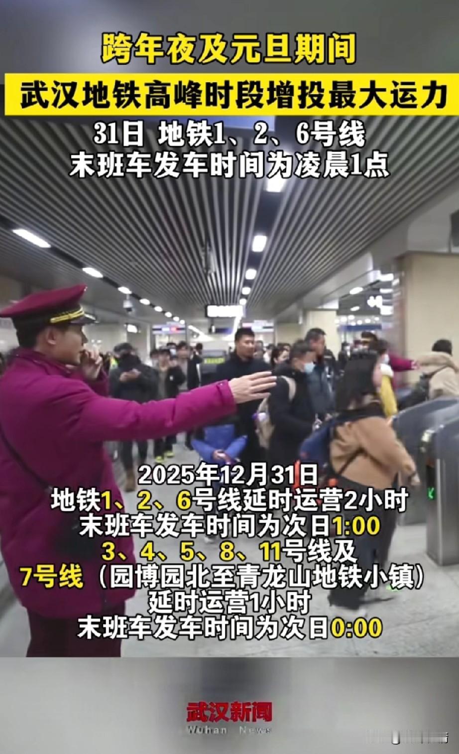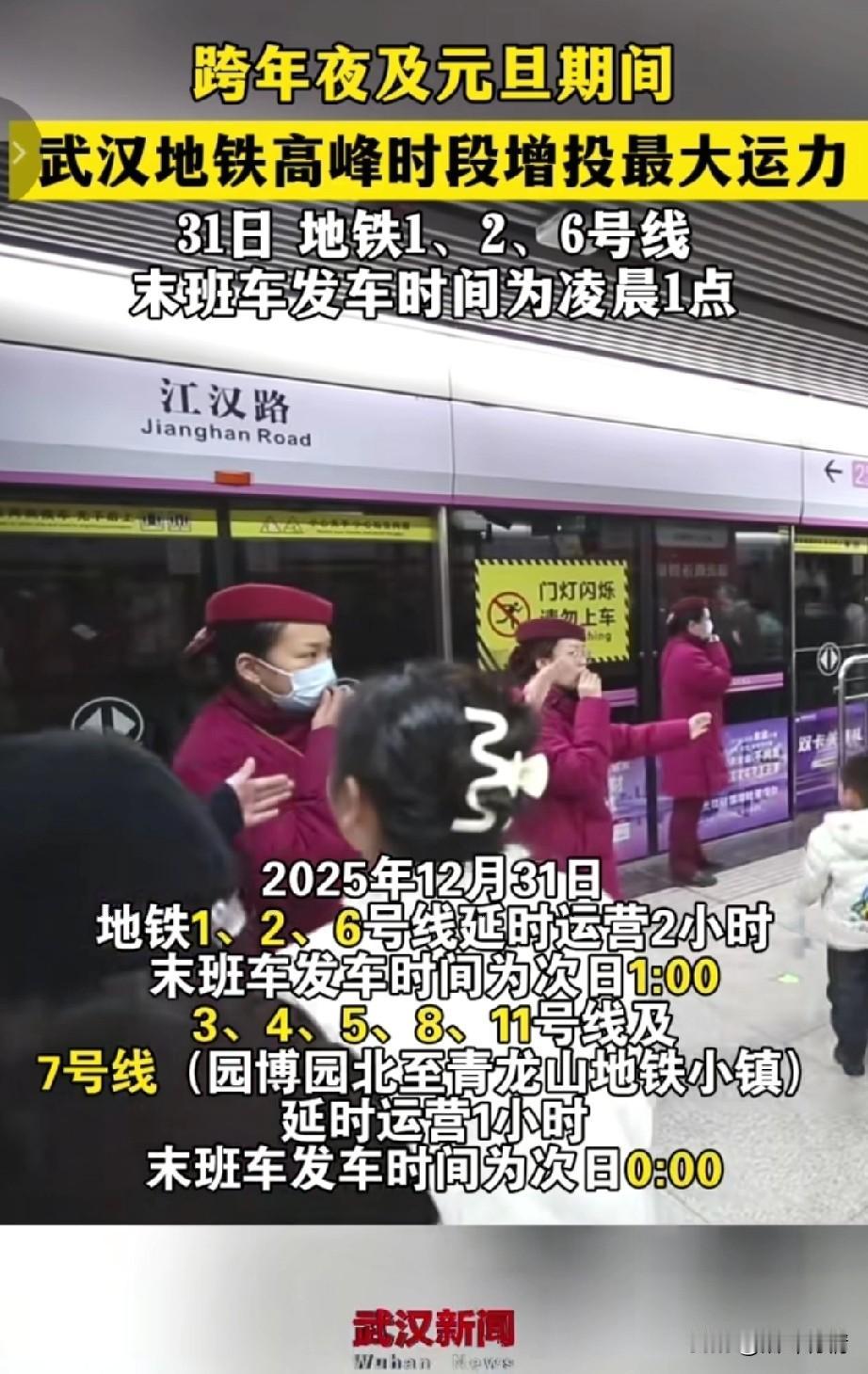 武汉人注意了, 2025年12月31号, 武汉地铁时间将延长, 跨年夜以及旦期期