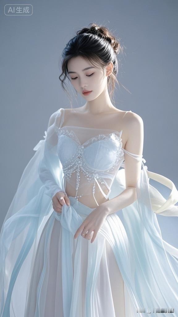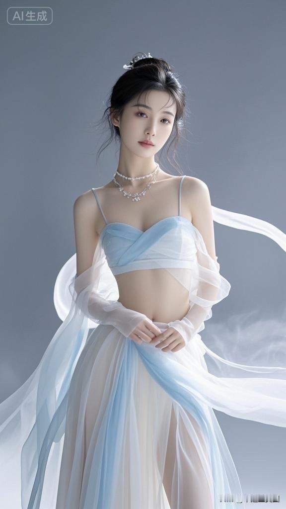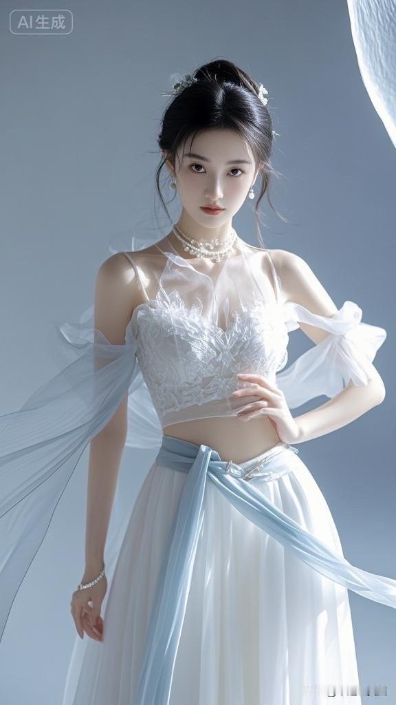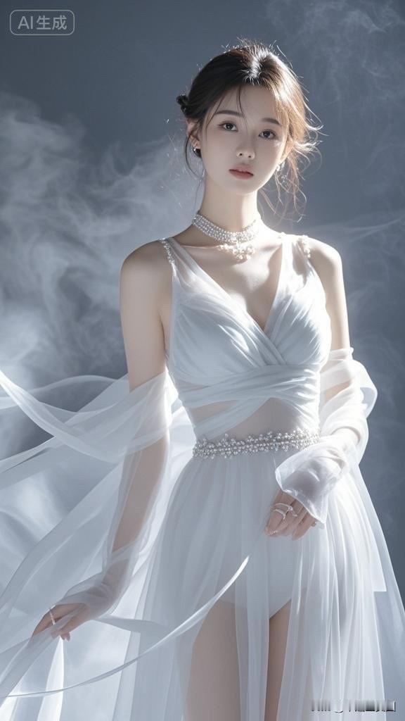梦幻仙境中的优雅女神,轻盈飘逸的白色长裙,宛如童话中的仙子。