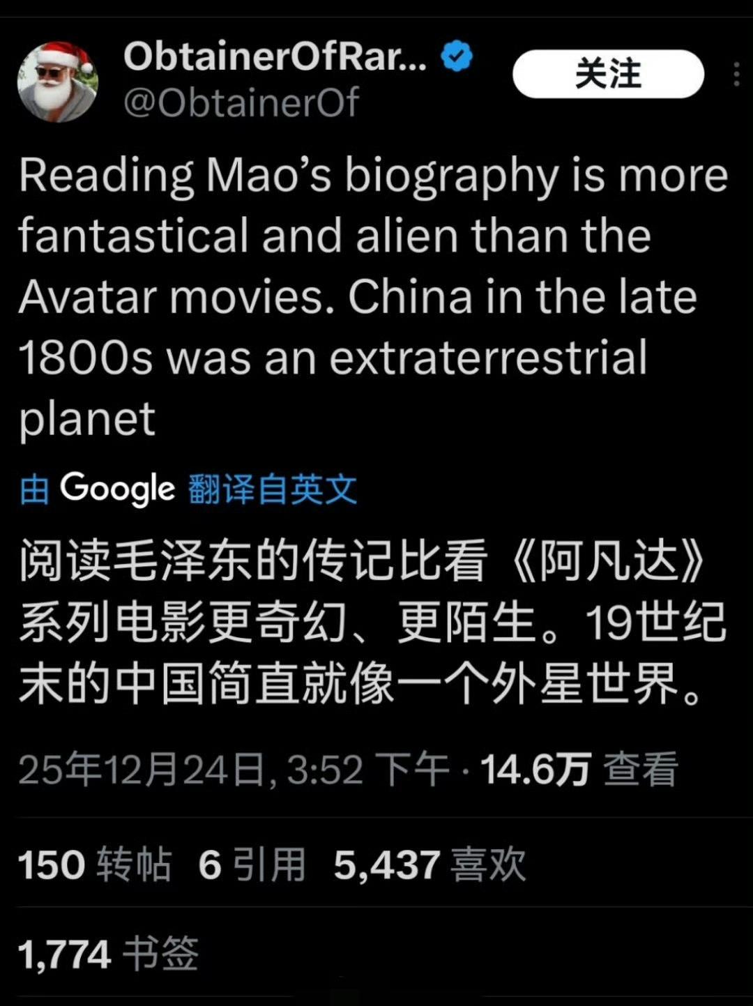 外国网友称,“阅读毛爷爷传记比看《阿凡达》系列电影更奇幻、更陌生。19世纪末的中国简直就像一个外星世界。”对此教员有诗云:“红旗卷起农奴戟,黑手高悬霸主鞭。为有牺牲多壮志,敢教日月换新天!”[加油][加油][加油]毛爷爷经典语录 毛爷爷思想 海外条友说