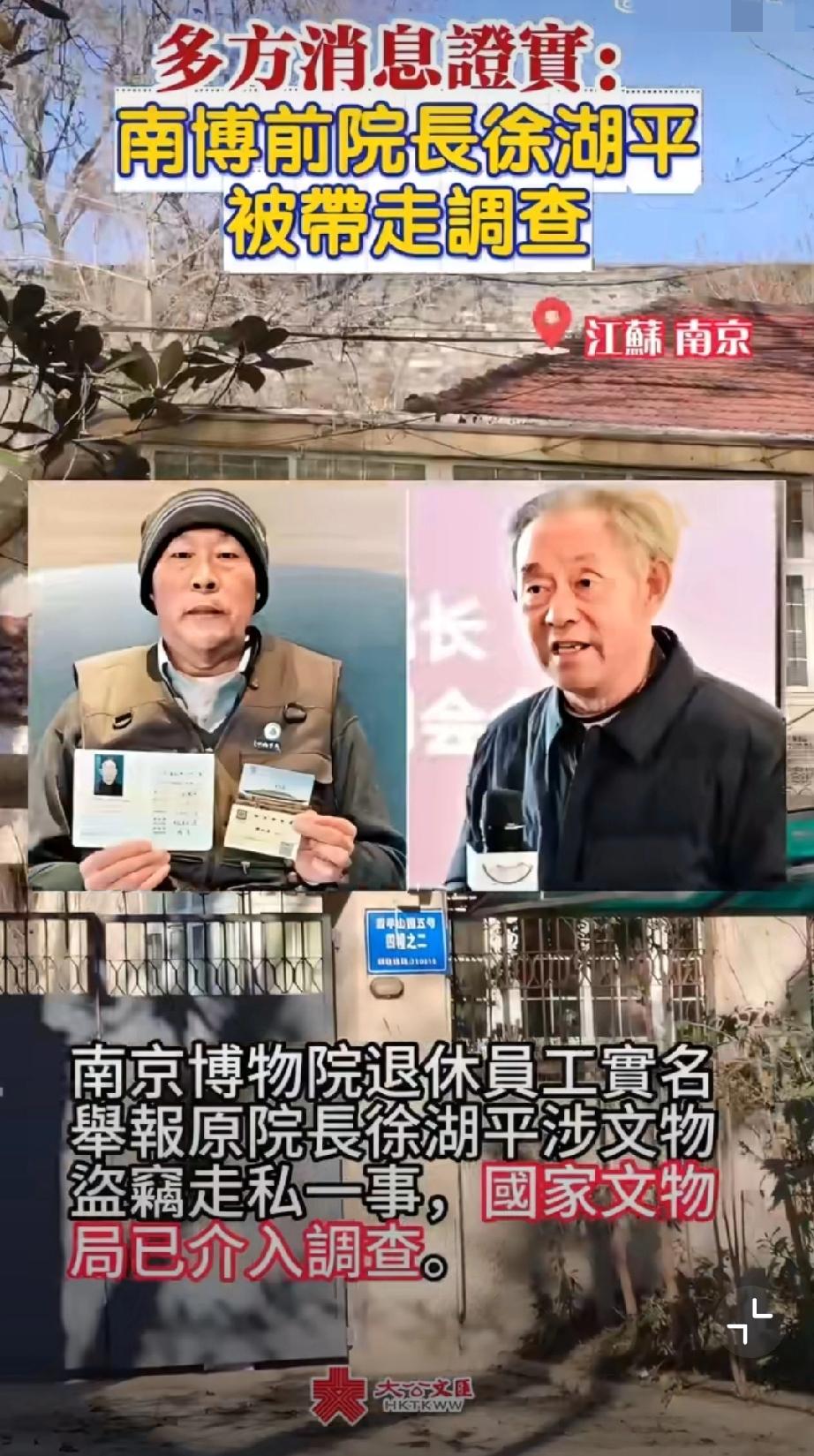 大公报:多方消息证实,南京博物院前院长徐湖平被带走调查。徐湖平 武汉徐平 南京爆