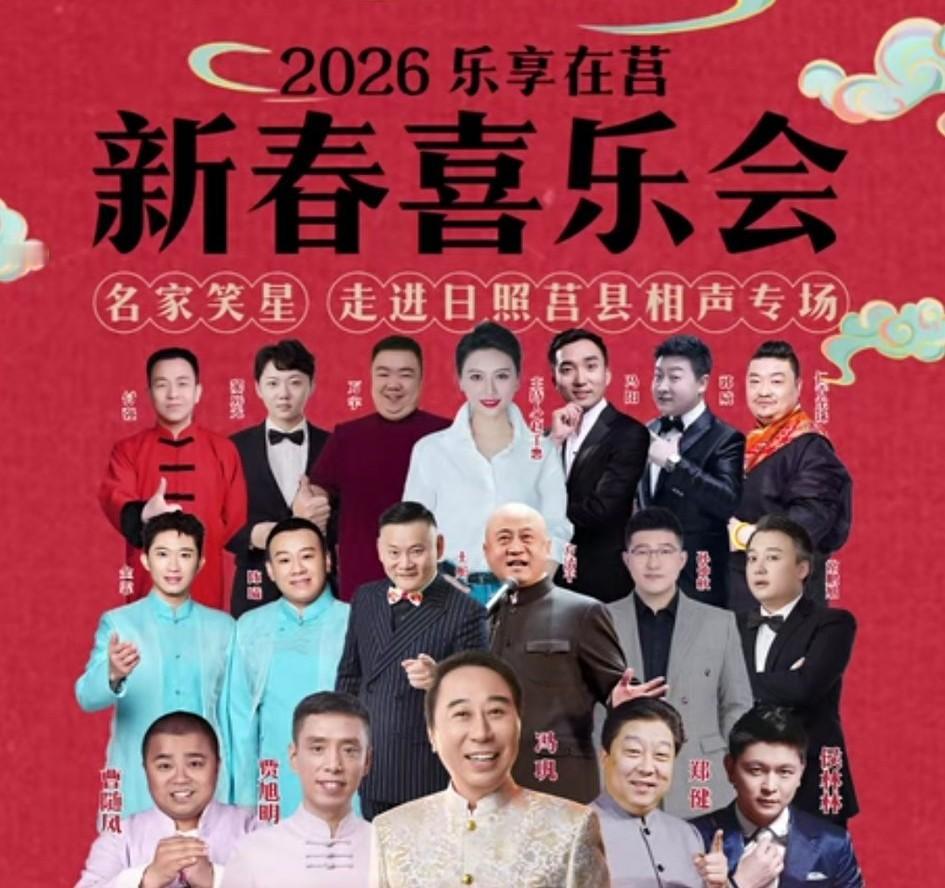 冯巩领衔中国广播说唱团相声专场将于2026年1月2、3日在日照莒县体育馆上演;冯巩、贾旭明、郑健,金霏、陈曦,王彤、曹随风,方清平,窦晨光、常鹏旭,孙仲秋、冯阳等参加演出。