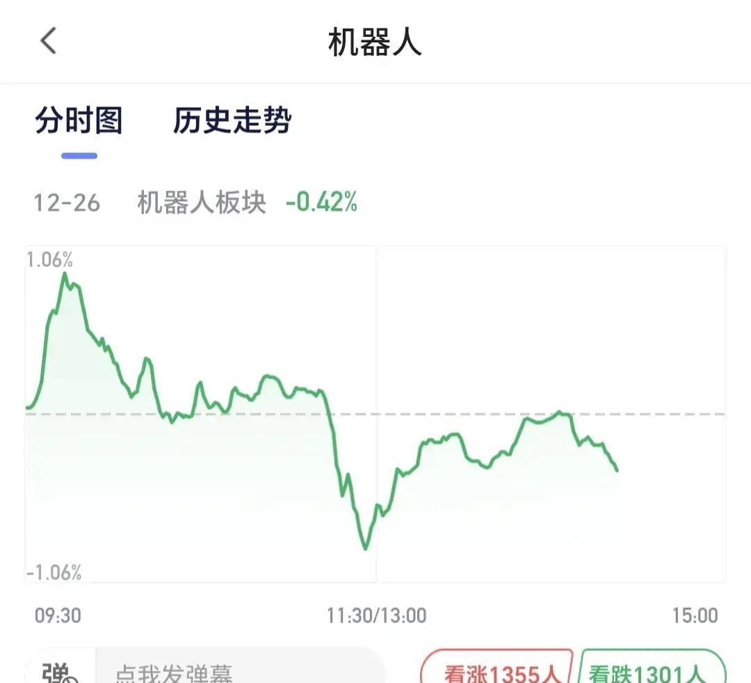 机器人这块最近动静不小,前两天还猛冲一把,昨天和前天涨得喜人,结果今天小回调,盘
