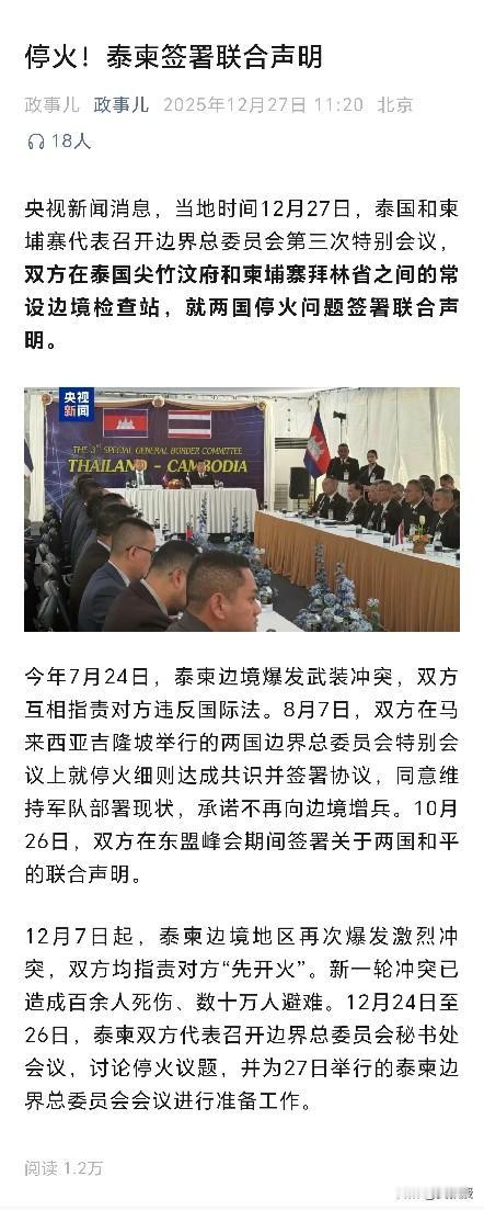 彻底认怂!外媒报道:关于泰国🇹🇭和柬埔寨🇰🇭在泰国与柬埔寨签署