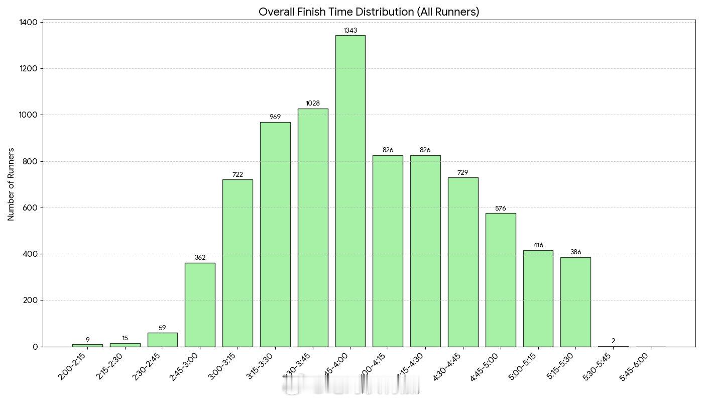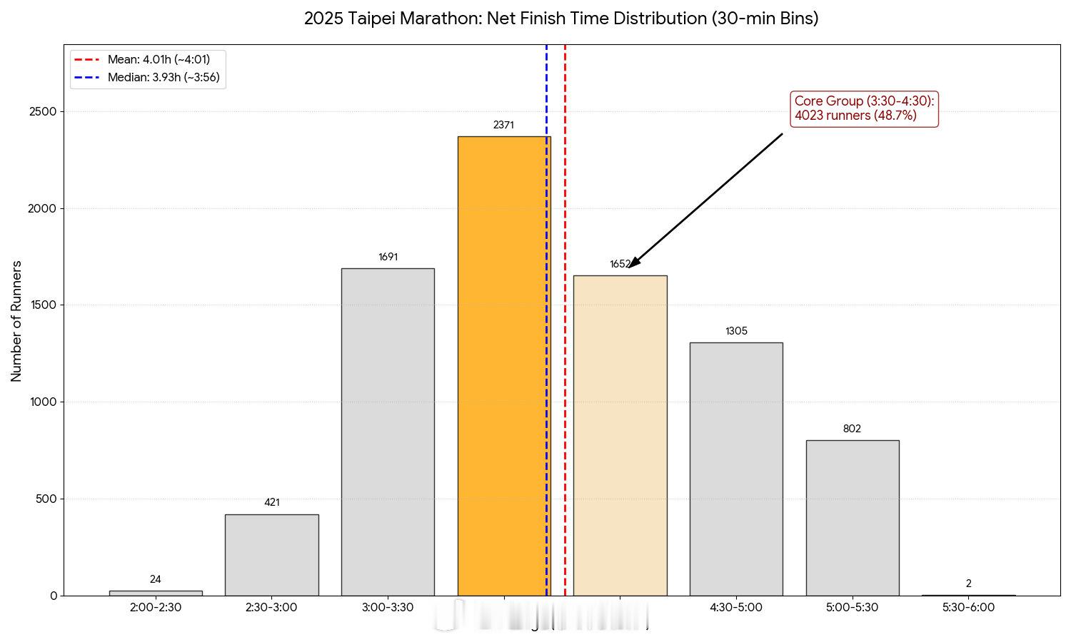 2025台北马拉松完赛时间的一些统计数据。平均完赛时间4小时,相当可以了。跑步笔记制作,不要在意细节。台北马拉松 赛事组织 马拉松