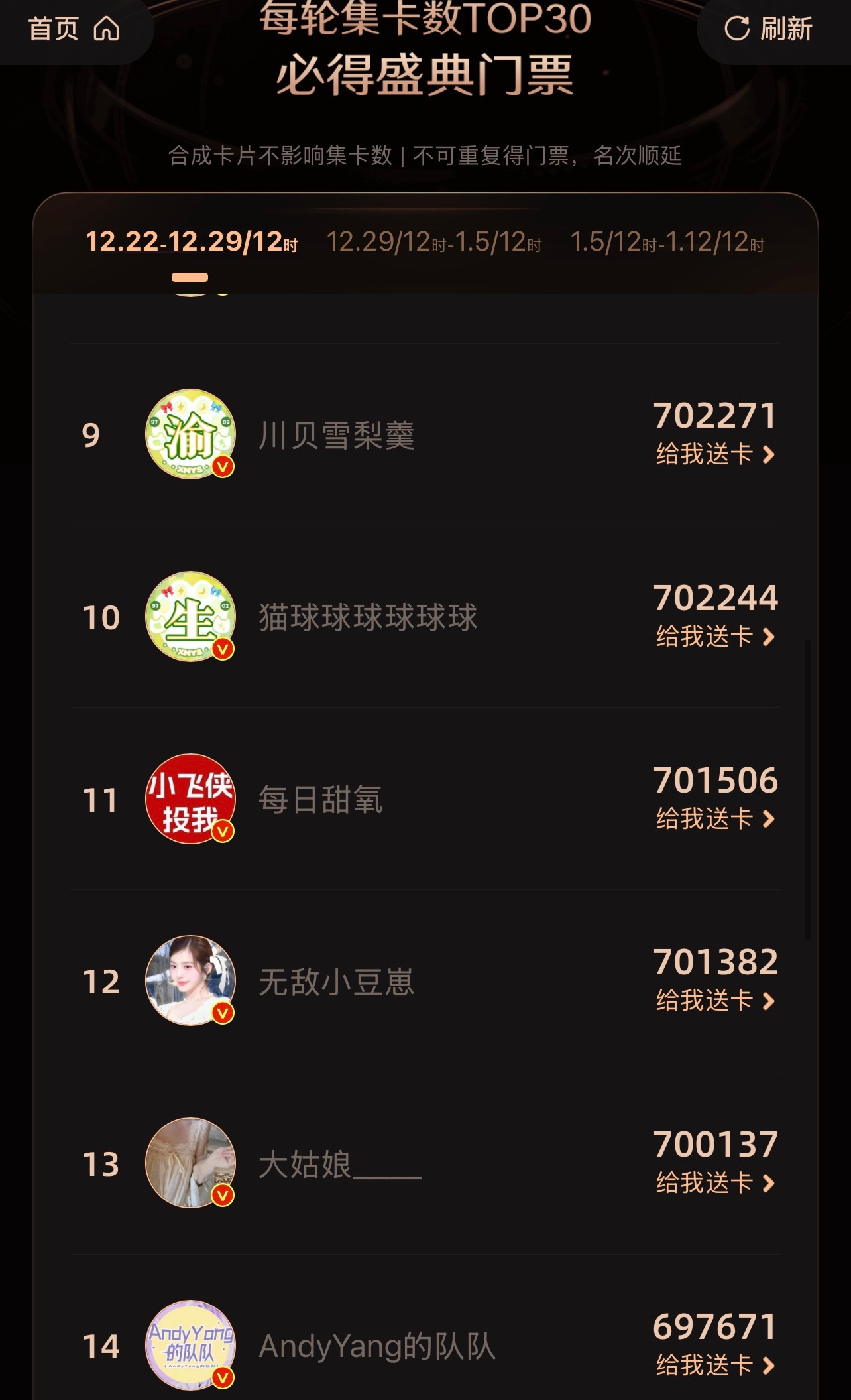 说真的,现在还看到带节奏说不投的微博之夜拉黑吧粉丝搞微博之夜的目的是票🎫‼️是票🎫‼️集卡拼的是的前30名每家粉丝得票数量而不是名次!门票就是灯牌数,所以怎么还会有人来问我到底要不要投,我一个营销号都知道,线下活动灯牌数量的重要性!投票为了集卡,送卡给入榜的同担,前排就能得到免费的票,这不爽吗?本质花点时间打投的事情,又不花钱,如果这点都做不到,还到处喊说不投不集卡的人,皮下肯定有问题。