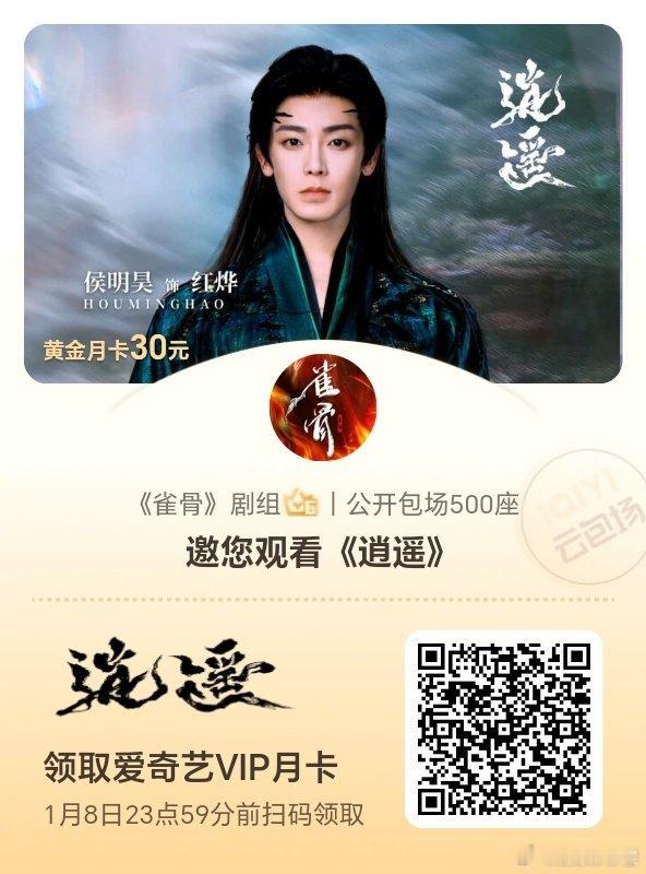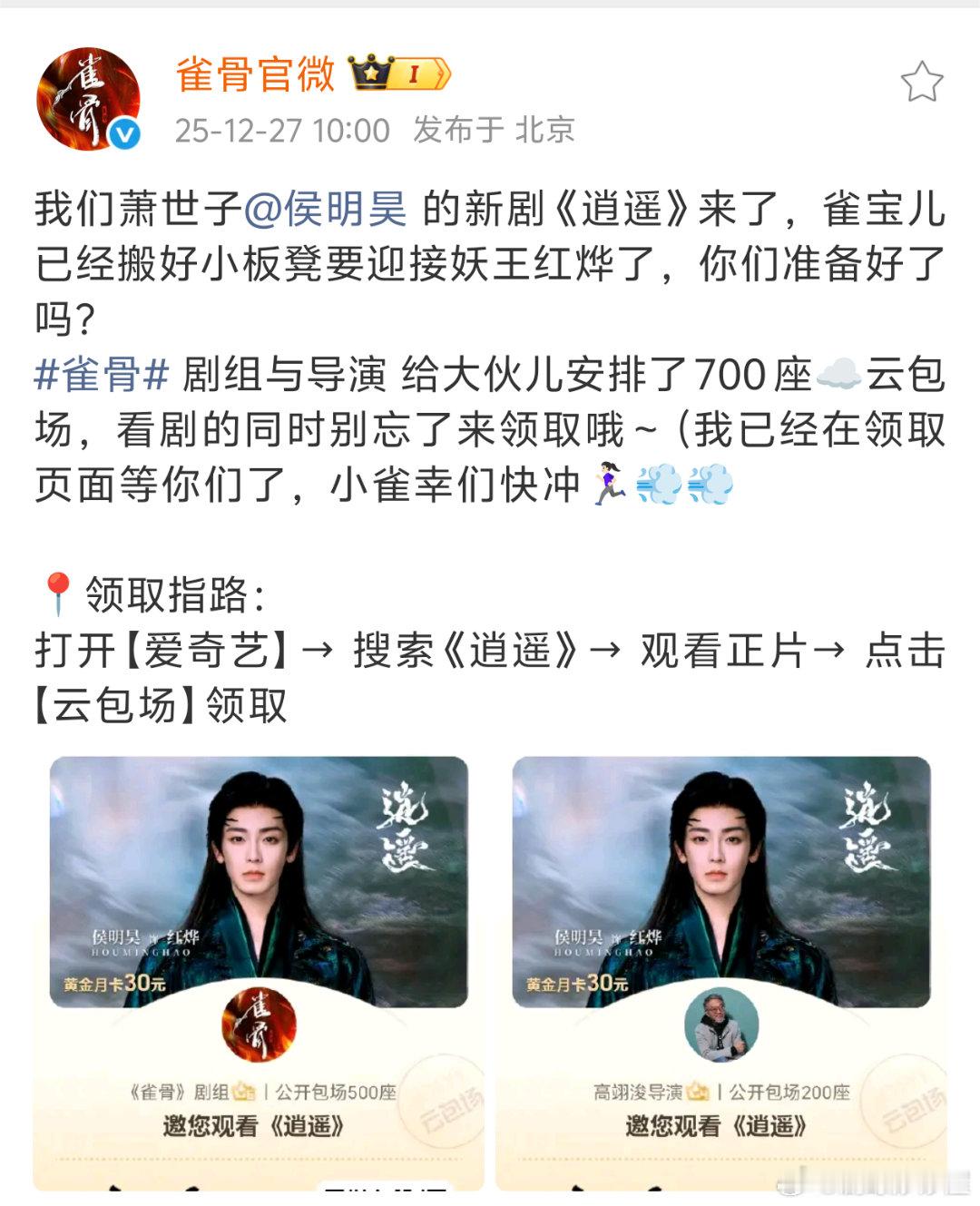 沃趣侯明昊刚杀青的《雀骨》剧组和导演给小侯新剧《逍遥》包场了,昨天《碧血蝉》还换