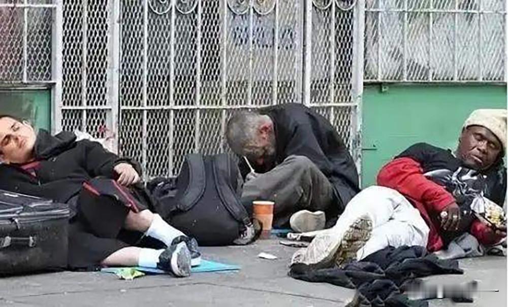 美国“斩杀线”以下的人其实多数并不是饿死的,而是另外四种死法才导致流浪汉的平均生存年龄只有五年。 你看总是有美国的华裔晒免费食品的视频来试图证明美国没有斩杀线,食品种类有时候还挺丰富,许多流浪汉就是靠领取免费食品来维持生活。 但既然饿不死,为什么美国的流浪汉还是活不过五年呢? 其实除了饿死,美国的流浪汉多数都逃不过其它四种致死因素。 一是冻死,流浪汉之所以叫流浪汉,不是没吃的,而是没地方住,只能住街头或者下水道,到了冬天,特别是美国的纬度比中国还高,冬季多数地方寒冷,每年冻死街头的流浪汉有很多。 二是病死,流落街头的卫生状况是极差的,这导致更容易感染病毒和细菌,而又没钱治病,使得一场普通的流感就能夺去生命。 三是吸毒致死,这就不用多说了,很多流浪汉本身就是瘾君子,而那些本来不吸的由于街头环境的改变也染上了毒瘾。最关键的是以前的毒品价格昂贵还不容易得到,而现在的芬太尼,便宜量又足,对身体伤害又大,真是斩杀的好手段了。 最后街头混乱的环境导致的犯罪概率大增,因此而死亡的概率也大增。 这就是为什么美国免费食品的覆盖率那么广,跌落斩杀线的流浪汉们生存概率还那么多的原因了。