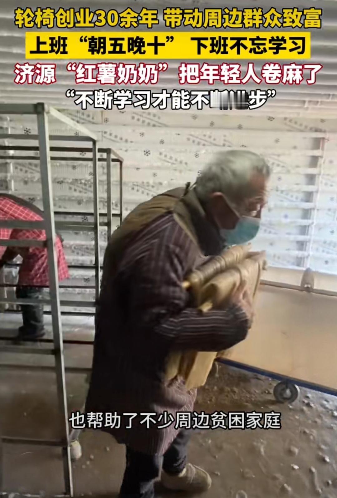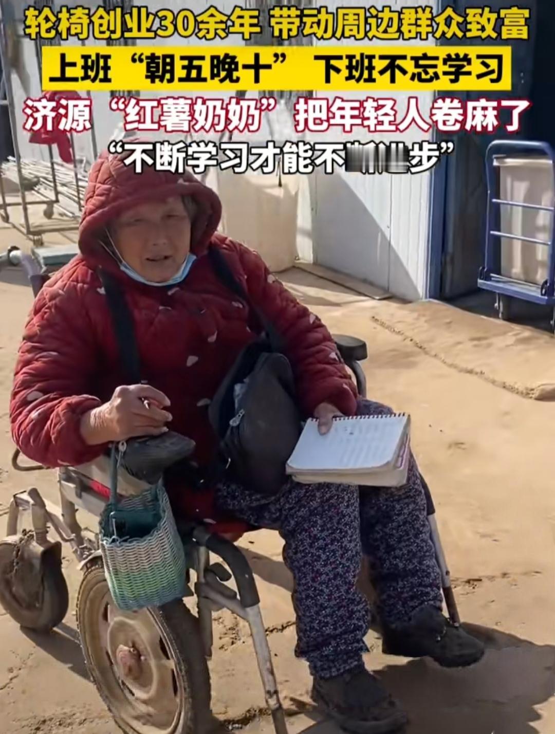 69岁奶奶坐轮椅创业年入200万,朝五晚十干事业,把年轻人都卷麻了! 河南济源的“红薯奶奶”李小稳,今年69岁,因类风湿坐了20多年轮椅,却活成了网友口中的“真大女主”! 她每天清晨5点就下田育苗、管护,忙到晚上10点回家,还不忘自学农业技术。三十多年前,她曾因买到劣质红薯苗深夜痛哭,愣是不服输,经历几十次失败培育出高产品种的“脱毒红薯”。如今她的合作社形成了育苗、种植、加工、销售的完整产业链,一年收益超200万元。 更让人佩服的是,李奶奶不是自己富,而是带着乡亲一起赚!她的合作社每年给工人发60万元工资,最高月薪能到5000元,还帮扶50多户村民加入,提供技术指导和保底回收,让大家在家门口就能就业。有人问她,这么努力,之前有赔过嘛?她很乐观的回答之前也有赔过,每年大概赔个几十万这个样子。 也有人问她一把年纪为啥这么拼,她只说“我不甘心”。这份花甲之年仍不服输的韧劲,戳中了无数网友:“这才是真正的大女主,比偶像剧里的剧情更动人!”“年轻人的躺平焦虑,被李奶奶上了一课”。 李奶奶用行动证明,年龄从不是追梦的阻碍,只要有韧劲,泥土里也能长出光!60岁阿姨创业 创业 老奶奶