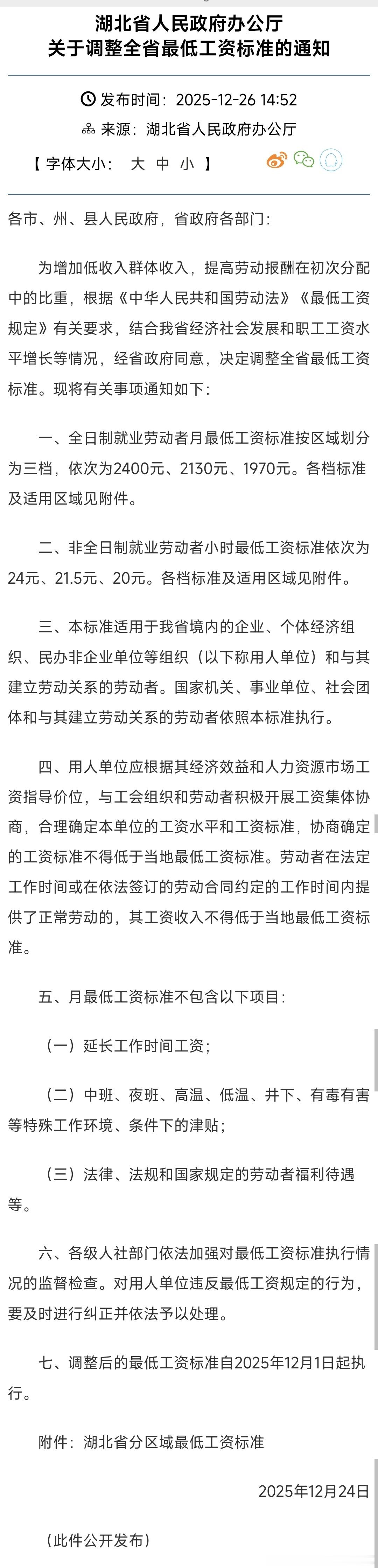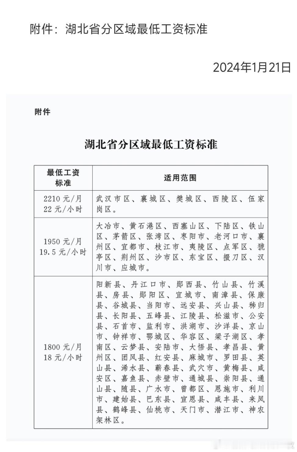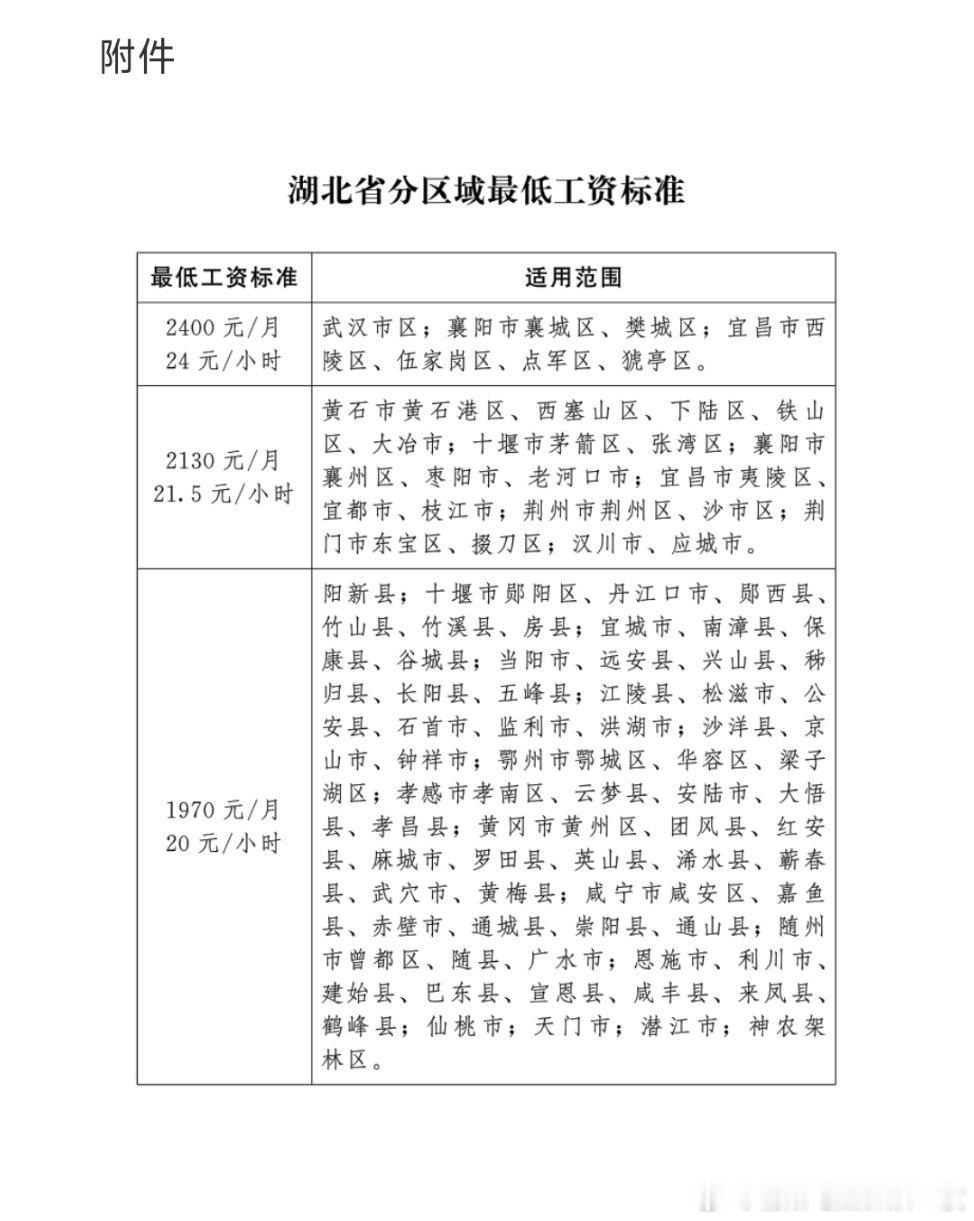 湖北调整全省最低工资标准! 相比上次调整图四,增加了。