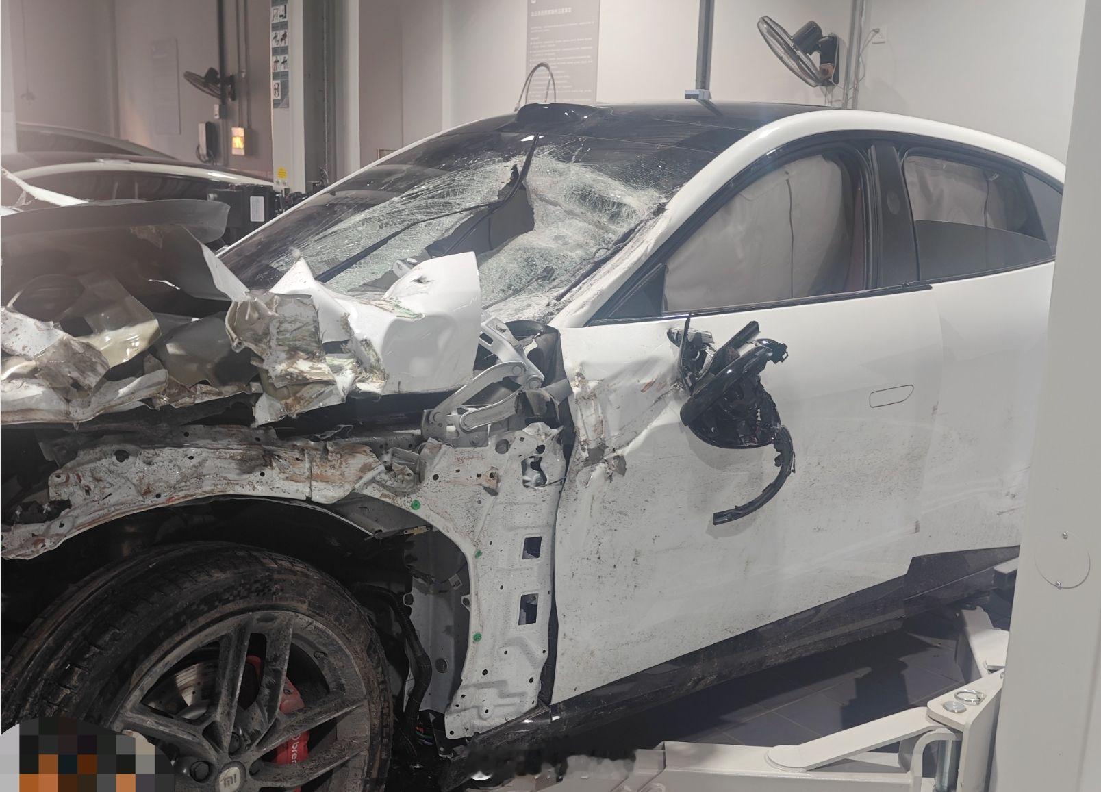 小米YU7这个A柱什么实力,这是属于钻车底了,气囊弹出,车门正常打开,ab柱无明显变形,车主没问题