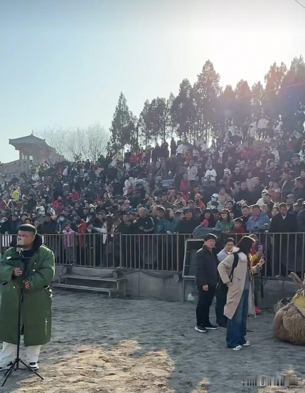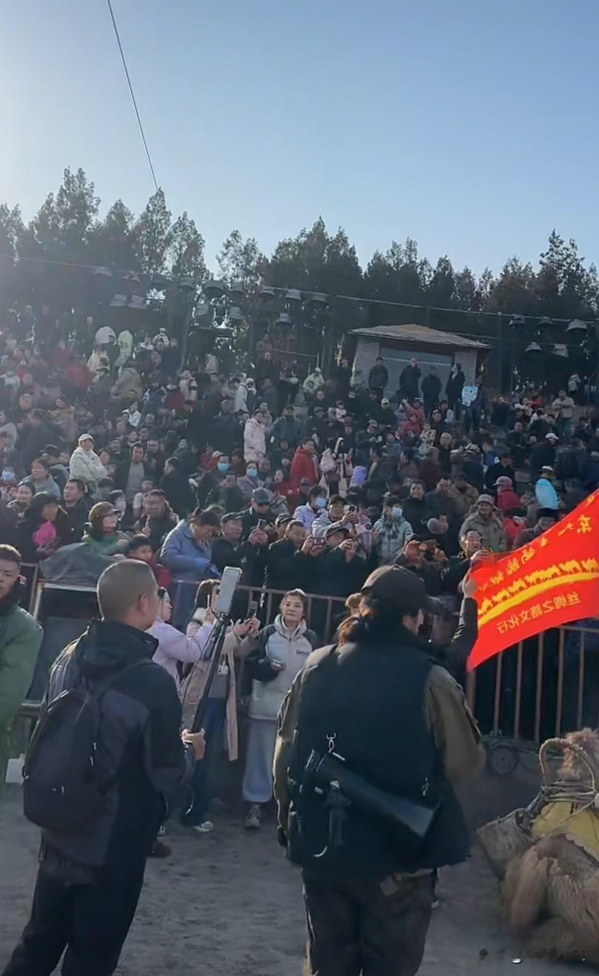 河南省沿途群众夹道热烈欢迎新疆东天山骆驼队。2025年12月25日骆驼队进入河南省后,沿途群众热情高涨,沿路夹道欢迎骆驼队,骆驼队的吃,住,行以及骆驼休息点安排的是明明白白,特别是今天在函谷关景区,参观群众人山人海,现场和骆驼队员进行节目互动,拉近新疆和河南的距离,增进两地人员交流,现场是欢声笑语,热闹非凡,群众生活幸福感直接拉满,骆驼队此行成绩斐然。