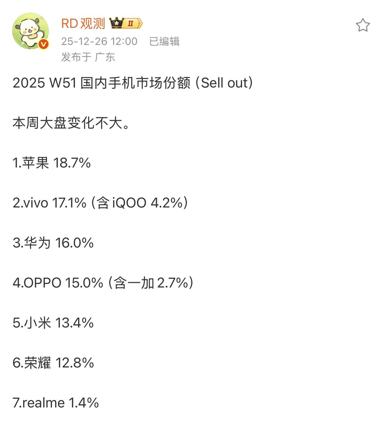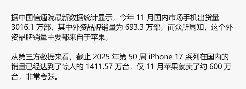 啊这,没想到现在手机销量前两名都是不吭声的?反倒是粉丝互相吵得激烈的两个品牌,销量还靠后呢?iPhone17确实卖爆了只能说,据说国内出货量逼近1500万台,这是什么概念?9月份发布的,这才三个多月……