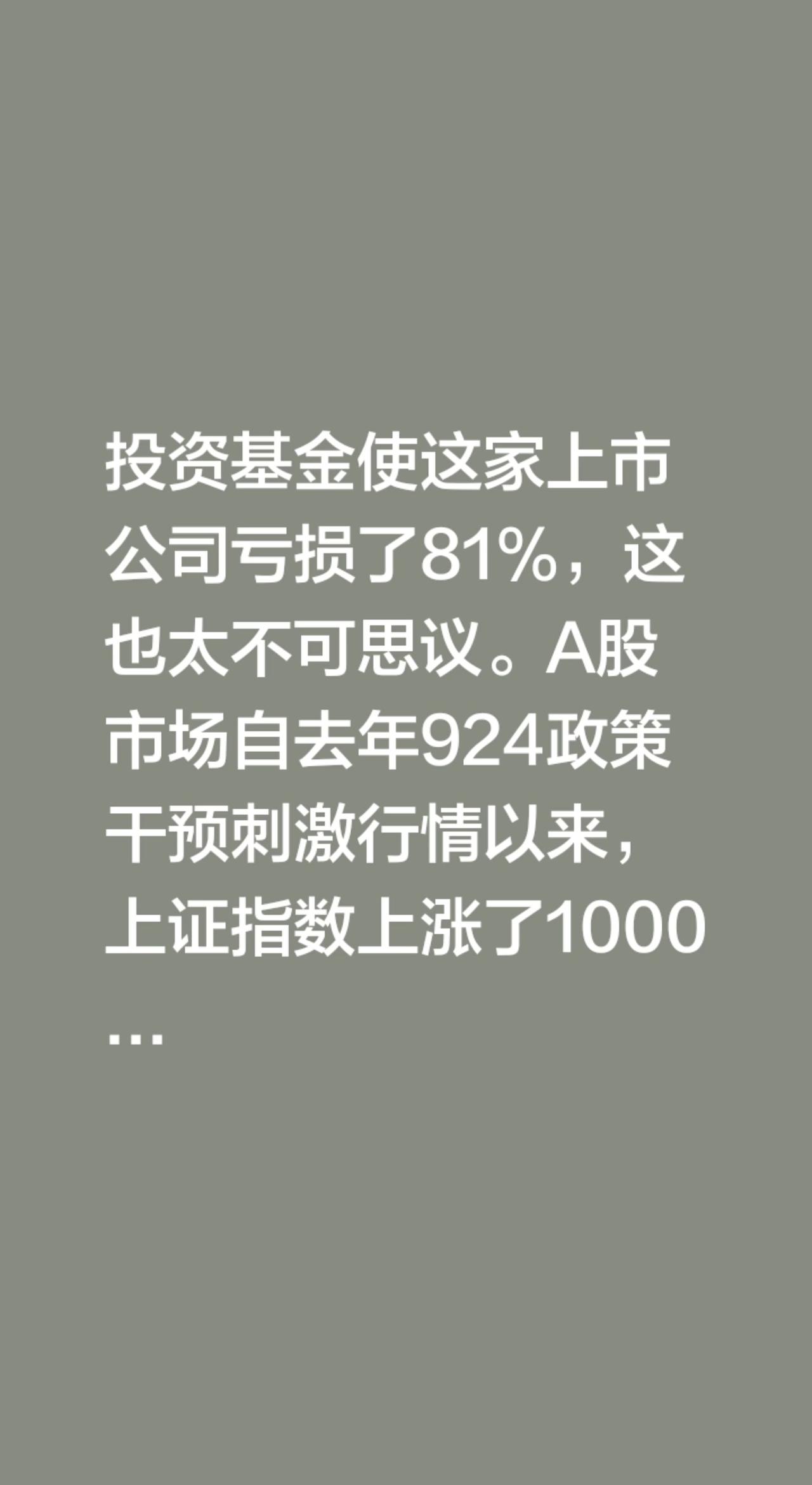 股市铁律:有赚钱的,就会有赔钱的!投资基金使这家上市公司亏损了81%,这也太不可思议。A股市场自去年924政策干预刺激行情以来,上证指数上涨了1000多点,然而,圣元环保所投资的一家私募基金却亏损81%!这是怎样的一种投资?这也说明了资本市场的风险性和波动性,资本是嗜血的,也是独立的,今年的A股市场投资中,一定有大赚的,也有大赔的!年年如此,明年也一样,不要相信那些所谓的天天大赚!赔钱的机构也很多。今日中国a股最新行情 a股最新行情今天