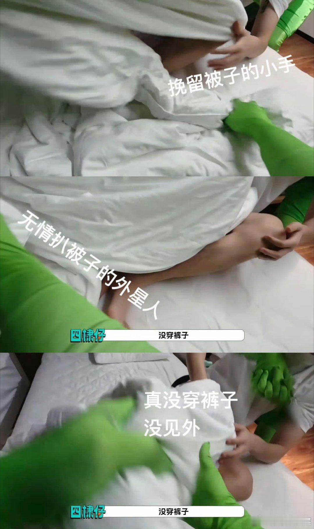 王鹤棣睡醒没穿裤子是我能看的吗我真的要被节目组笑晕!第一天上班直接被外星人从被窝里抬走,王鹤棣、黄子韬还在熟睡,结果外星人一进门,王鹤棣瞬间惊醒大喊:“我没穿裤子!”外星人居然还听得懂地球话,立刻把他塞回被窝。这是什么有礼貌的外星文明?懂礼义廉耻还得是你们节目组!姐妹们,谁有门路?我也想应聘当外星人,这活我真的能胜任!宇宙闪烁请注意