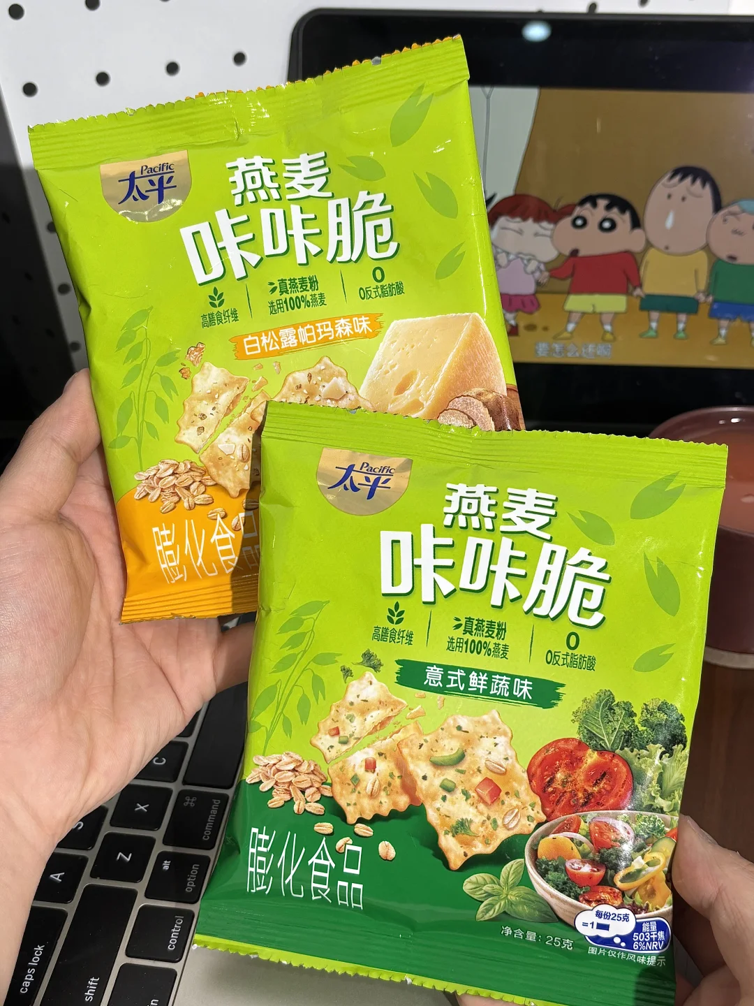 而用燕麦基底制成的太平燕麦咔咔脆 吃起来更薄脆 完全不输薯片之类的土豆膨化😋