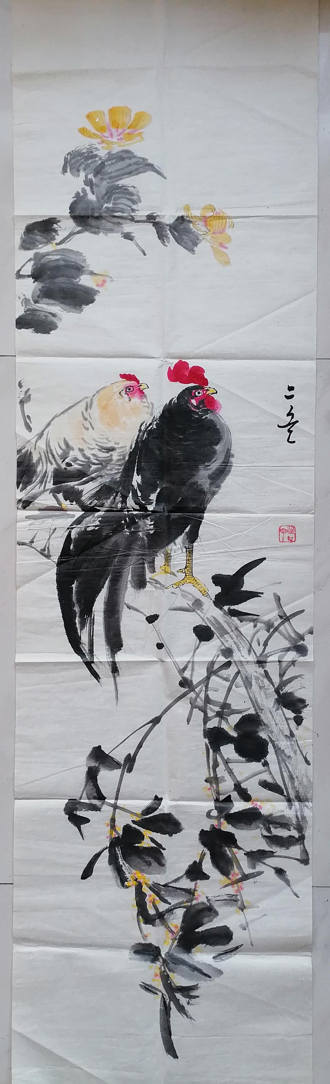 请欣赏著名书画家丁二兵先生的一幅双吉(鸡)图