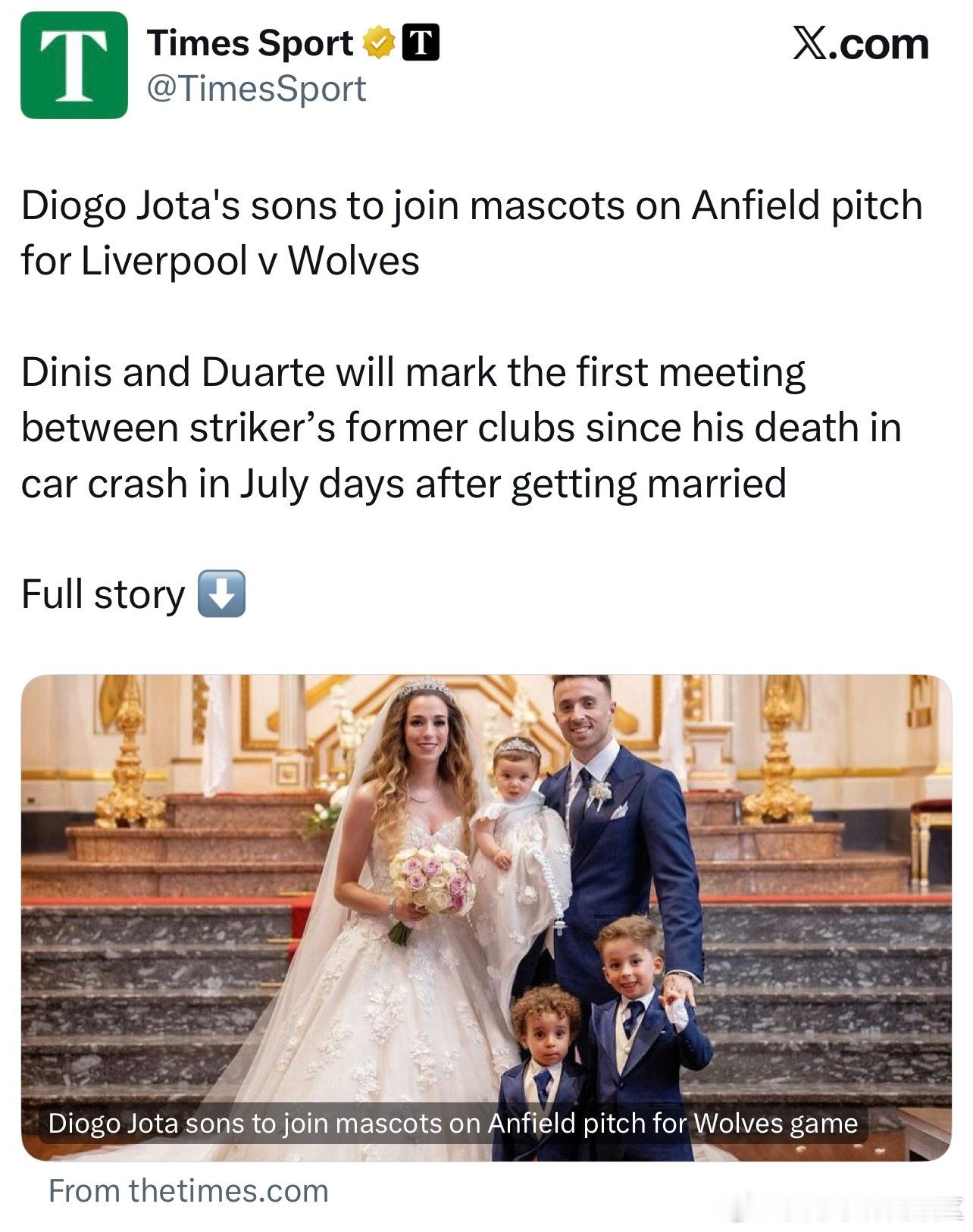 又是更想念我们塔子的一天昨天狼队全队也是来到了安菲尔德祭奠塔子,今晚的比赛塔子的两个孩子Dinis和Duarte也会来到比赛现场。