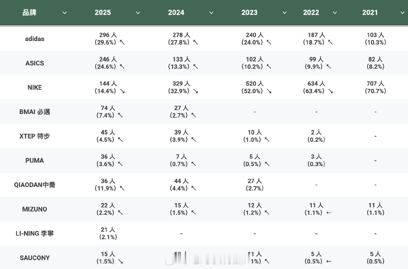 2025台北马拉松前1000名跑鞋统计。和全世界的趋势一样,耐克这些年真是市场逐步被蚕食。国产品牌凭借性价比优势在宝岛蹿升很快。跑步笔记制作,不要在意细节。台北马拉松 赛事组织 马拉松