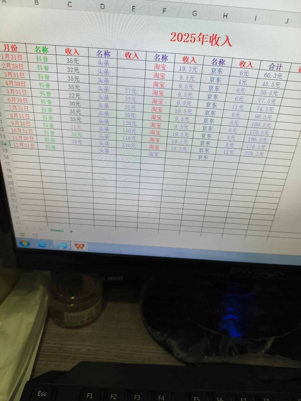 年初把“额外收入”拆成365份, 每天往罐里丢几个硬币。 到年底叮当响地倒出来,数了 三遍。 纸币带着零钱的水汽和汗味, 在超市柜台换了两条最熟悉的烟。 玻璃映出自己: 原来这一年,是这副模样。收入账本